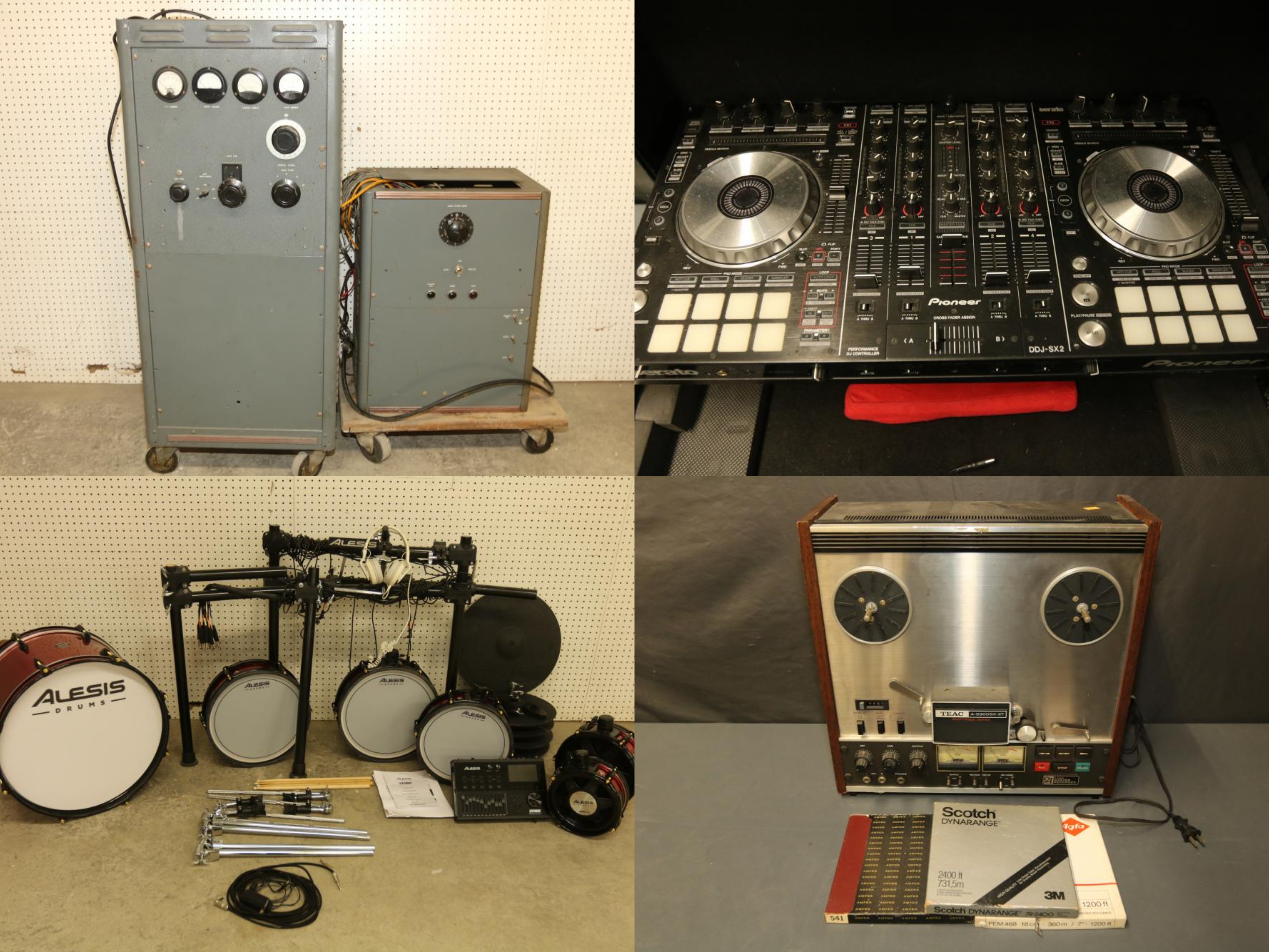 Items include Alesis Strike Pro Special Edition Electronic Drum Set; Teac A-6100 Stereo Reel to Reel Tape Recorder; Pioneer DDJ-SX2 4-Channel Professional DJ Controller; Cricut Maker with Portable ...