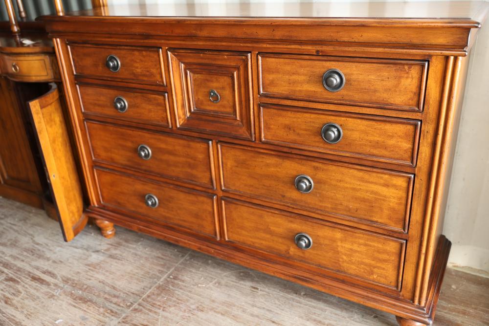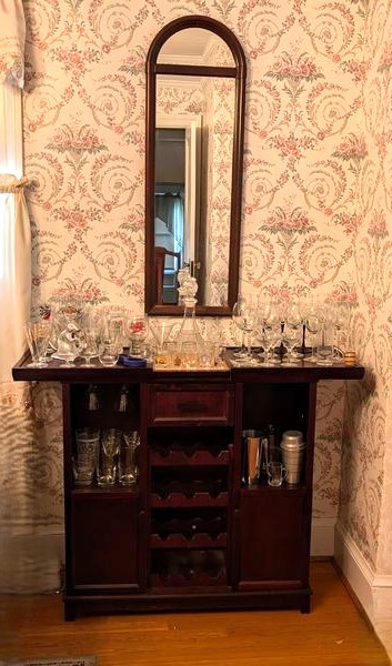 Items include Temple Stuart colonial maple hutch; Swift hand blender; jewelry; Lenox Christmas decor; Polish pottery; bar cabinet; Raleigh Bike; Toro lawnmower; vintage Old World Santa Collection;...