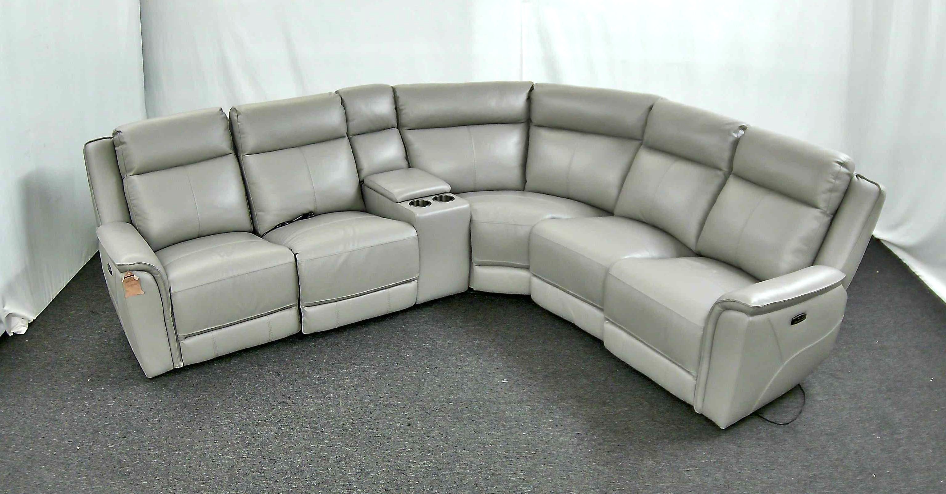 Item is a Macys Addyson 117" leather six-piece power reclining sectional. Item is located in Pleasant Valley, NY.