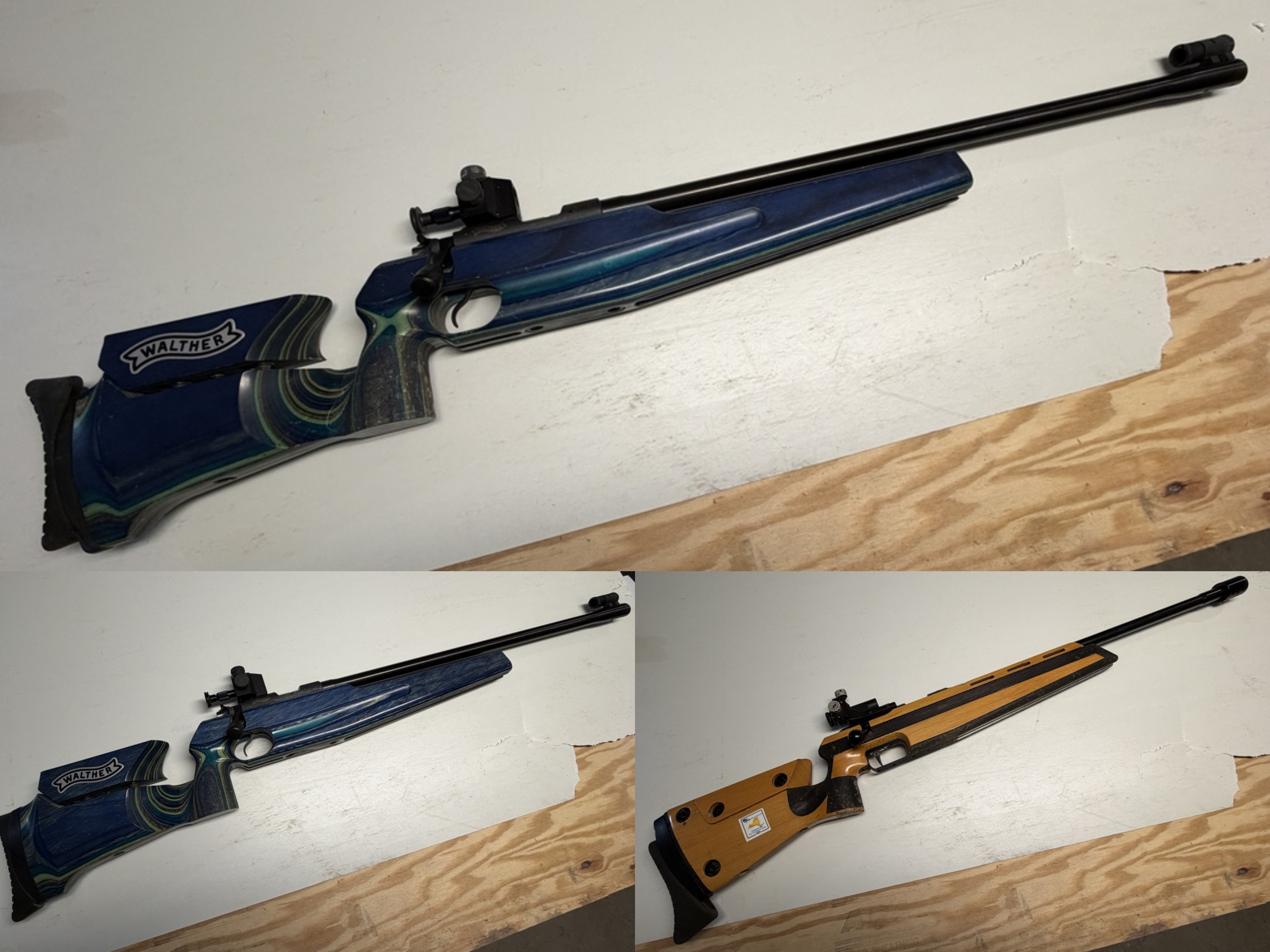 Items include Anschutz model 1903 Competition Rifle Anschutz model 1907 Competition Rifle & two Walther KK Club Sporters. Items are located in Croghan, NY.