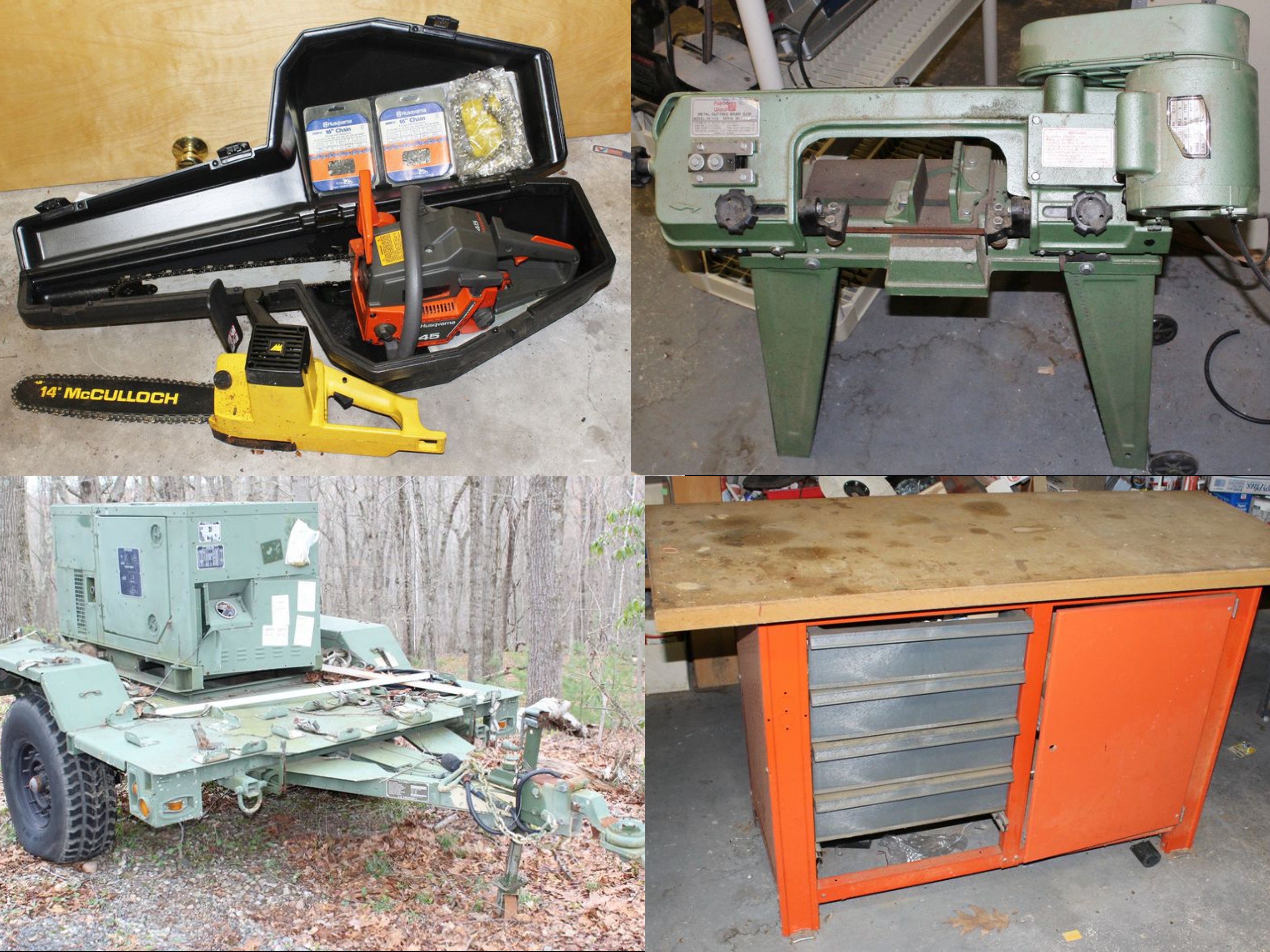 Tolland, CT tool auction including Model M1102 U.S. military surplus cargo trailer with MEP-803A diesel generator; Bostitch and other air powered tools; Ryobi 16” SC-160 Scroll Saw & Dremel Model 1...