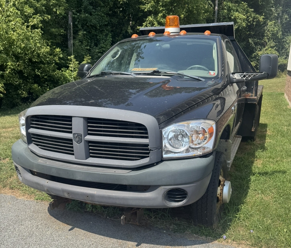 Items include 1986 Ford LN8000 Water Truck, 2008 Ford F-350 Super Duty Utility Truck with plow, and 1997 International 4800 Dump Truck 4X4. Items located in Poughquag, NY.