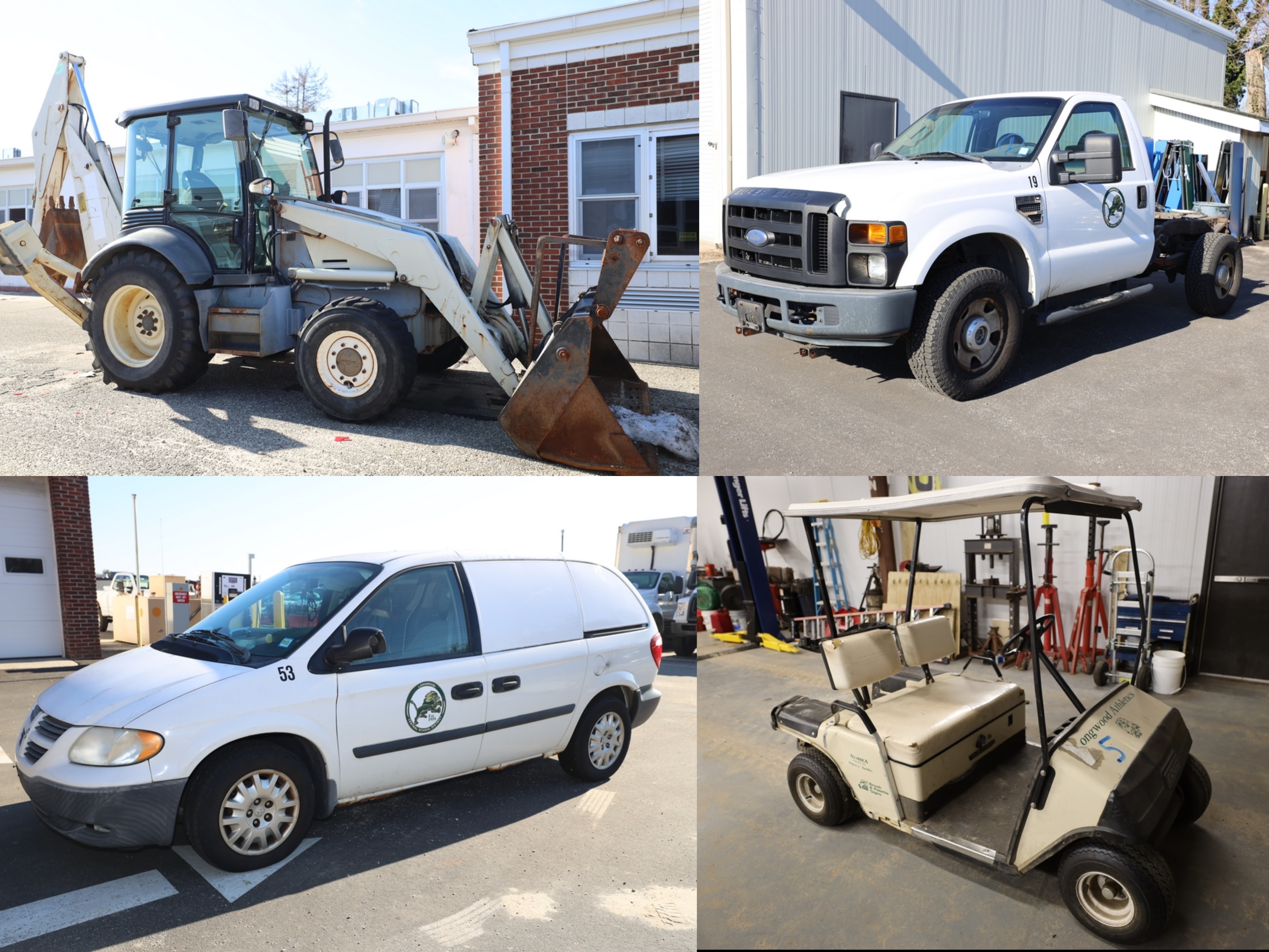 Items include 2008 Ford F-250 Super Duty XL cab & chassis; 2006 Dodge Caravan C/V; 2006 Ford Crown Victoria Police Interceptor; Fermec 750 back hoe loader; golf cart & Hustler Super Z 72" mower. It...