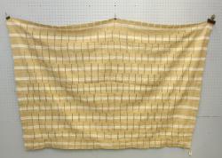 WEDDING BLANKET. Bozo people, Mali. This cloth was collected from Alae, a 74-year-old weaver in Gyambe, a Bozo fishing village on an island in the middle of the Niger River near the town of Mopti. The cloth consists of 10 hand woven strips. L 103in. W 59in.