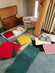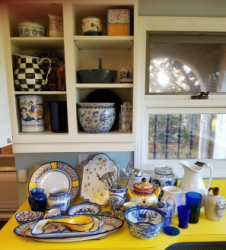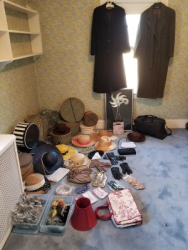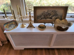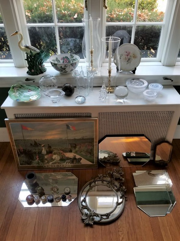 Items include solid brass decor & art; Wedgwood & Orefors; Claude Monet framed print; Hitchcock chest w/ drawers; Standard Chair of Gardner rocking chair; wall mirror; women's designer coats; vintage hats & handbags; Lionel trains; porcelain/pottery pieces featuring Ceramica/Vietri/Spode; rooster themed kitchen decor; Spode Christmas entertaining plates; Maple butcher block kitchen table; wine racks/bar paraphernalia; vintage Henry F. Miller upright piano; lawn/garden tools; TVs/audio electronics; vintage red shag rugs; sports equipment; Ampia pasta machine and more. Items located in Hartford CT.