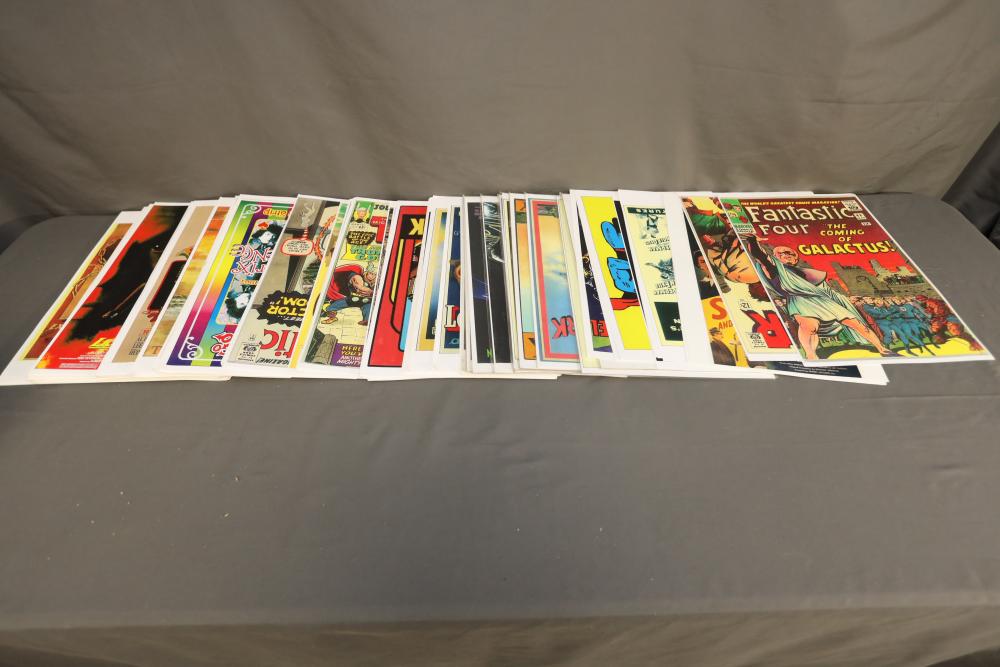 Reproduction posters and comic book covers, some incl "Licence To Kill", "Casino Royale", "Bond Itis", "James Bond", "El Satanico Dr.No'", "Batman", "Steel Mill", "The Fantastic Four", "The Joe Louis Story", "Bruce Springsteen", "Superman", "Supergirl", "The Godfather", "The Jimi Hendrix Experience", "Thor", "Journey Into Mystery", "The X-Men", "Atom Man vs. Superman", "Captain Marvel", "Captain America", "New York The Wodner City", "Ironman 2", "Fly To South Sea Isles", "Funny Face", "The Marvel Comics", "The Shadow", "United States Army Air Forces", "Two Tickets to Broadway", "Aviation", "The Beatles", "John Lennon", etc, over 225 in total.