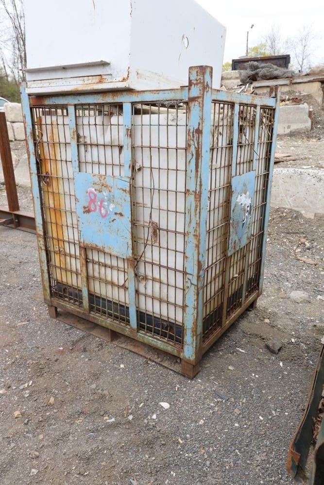 Liquid storage tank in metal rack 49" x 41" x 61.5" tall, excludes box on top of rack.