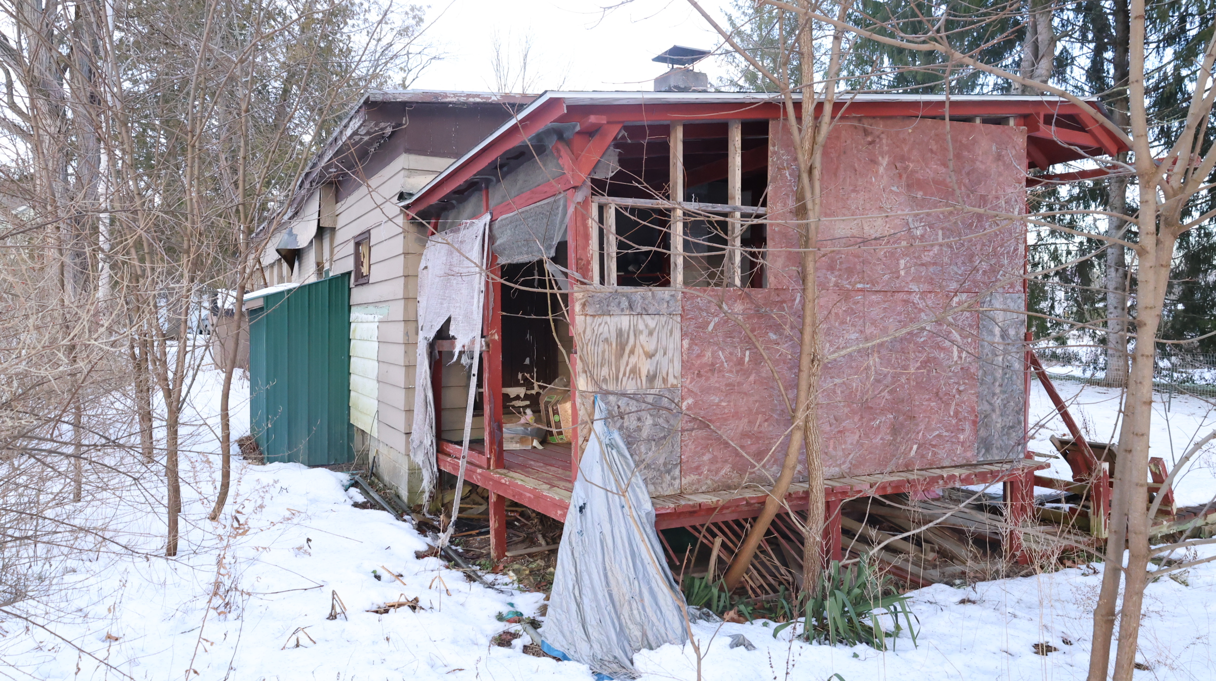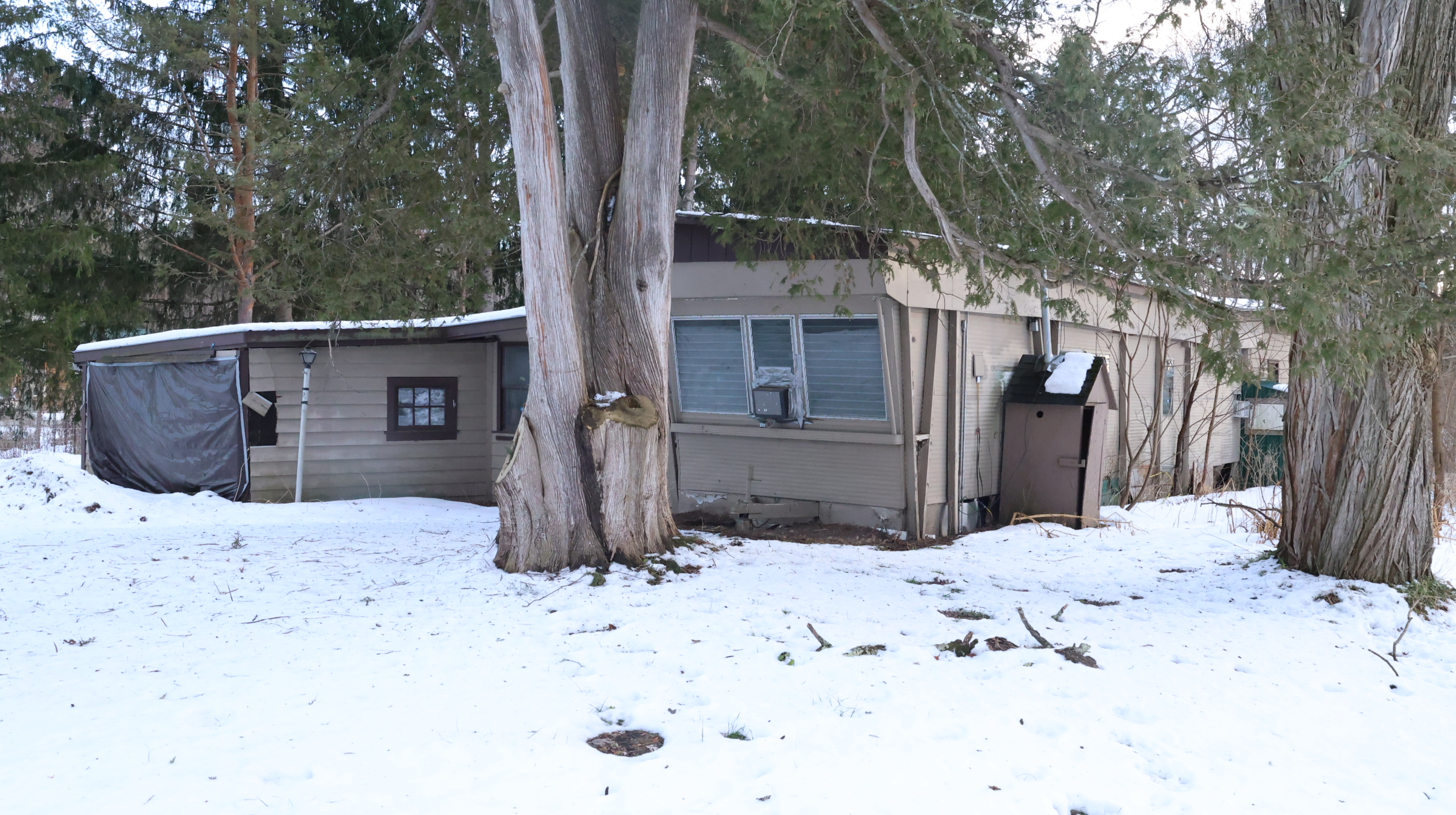 | Mobile home, porches, attached garage. |
