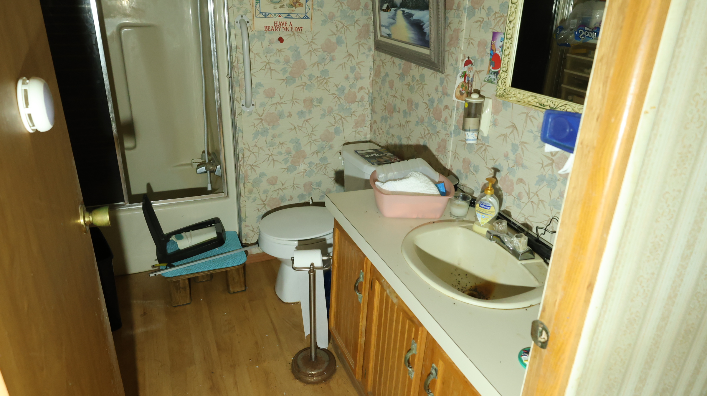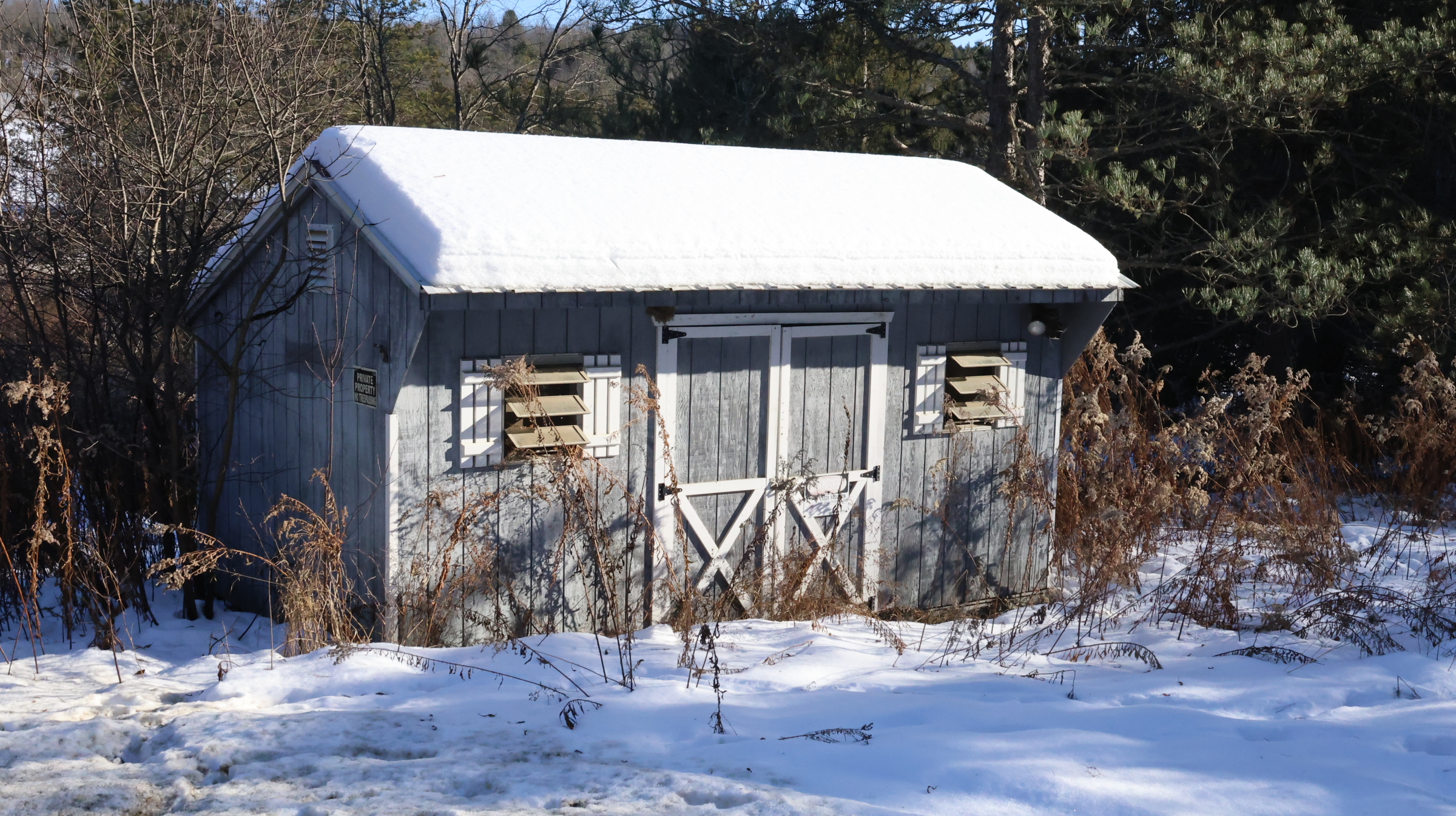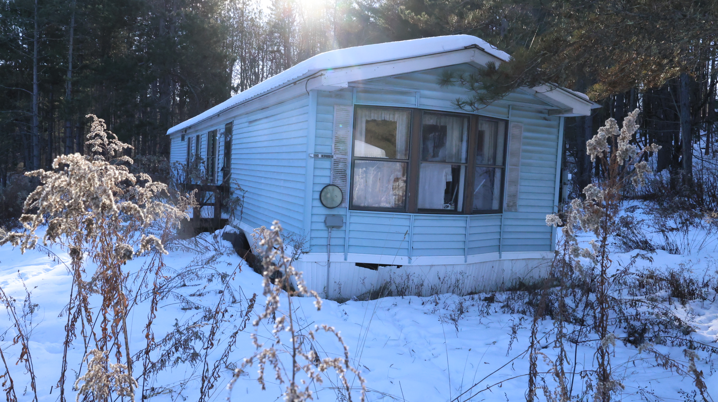 | Mobile home, pole barn. |
