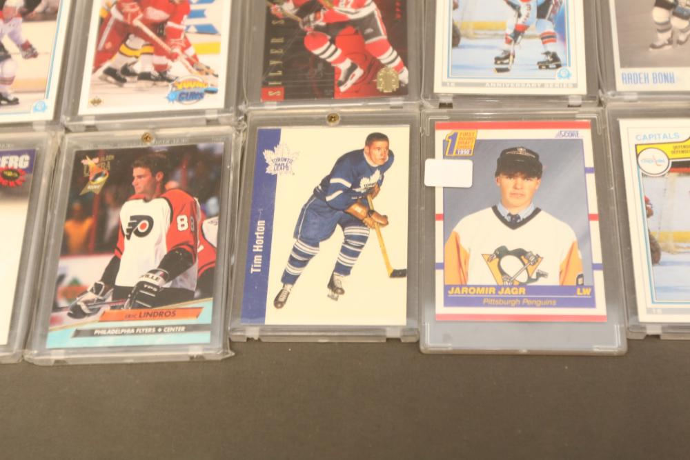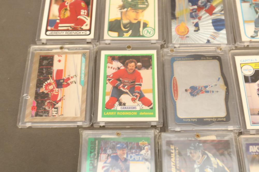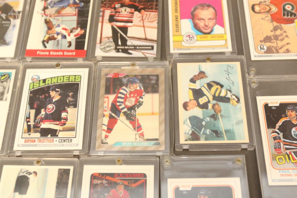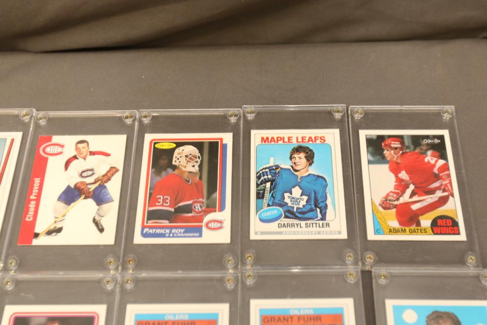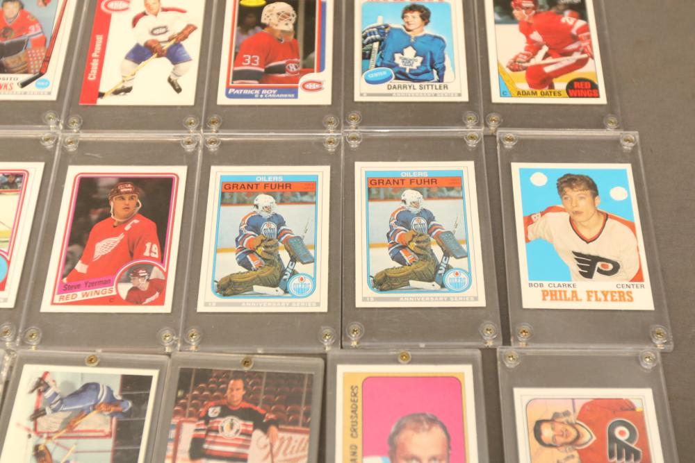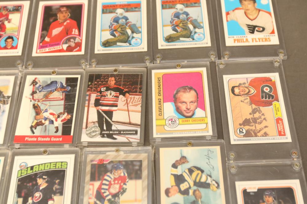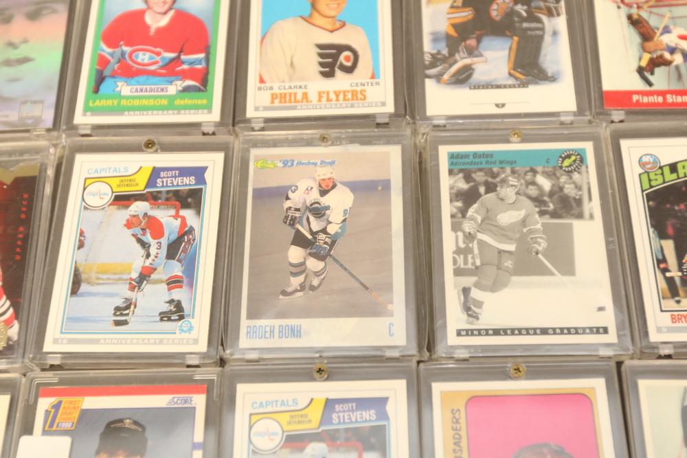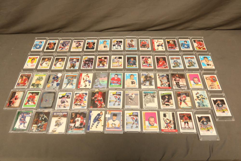 Over 60 slabbed Hockey cards of varying sets and years some names include Darryl Sittler, Bret Hull, Tony Amonte, Bob Clarke, Denis Potvin, Tony Esposito, Mike Bossy, Claude Provost, Patrick Roy, Adam Oates, Marcel Dionne, Grant Fuhr, Joe Sakic, Steve Yzerman, Jeremy Roenick, Neal Broten, Scott Stevens, Jaromir Jagr, etc.
