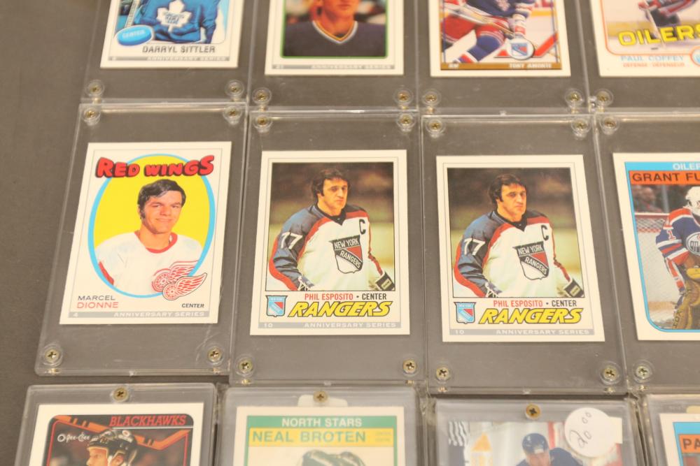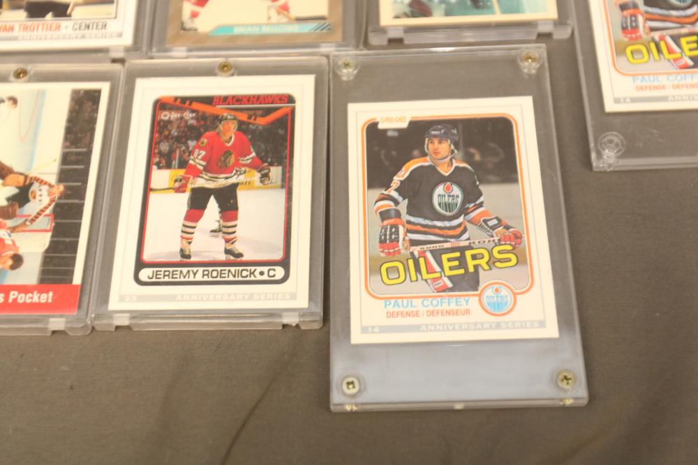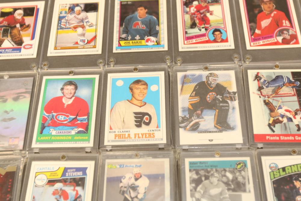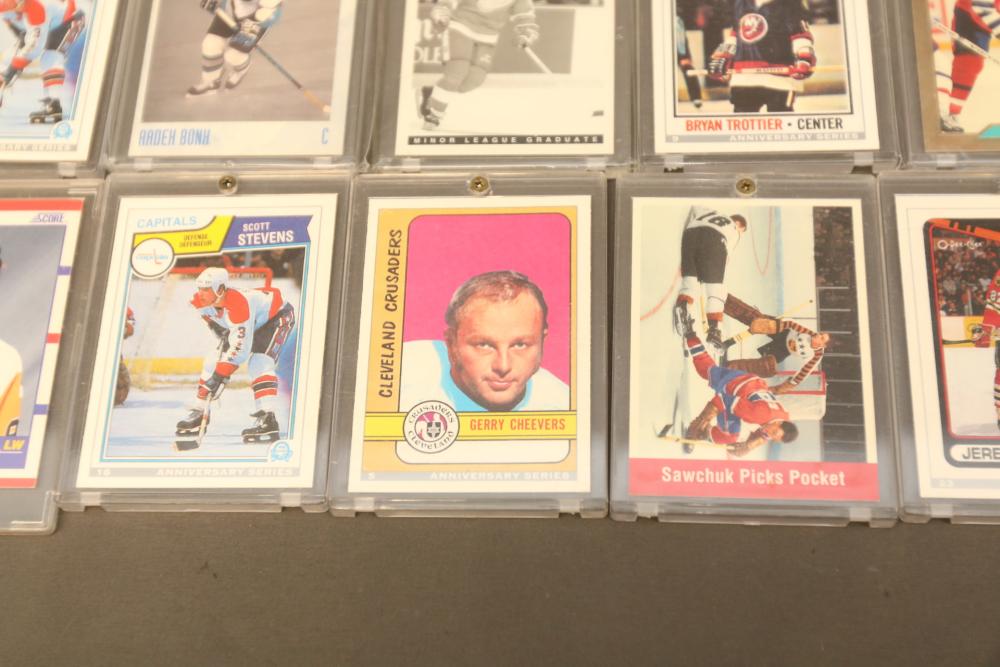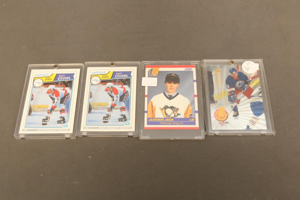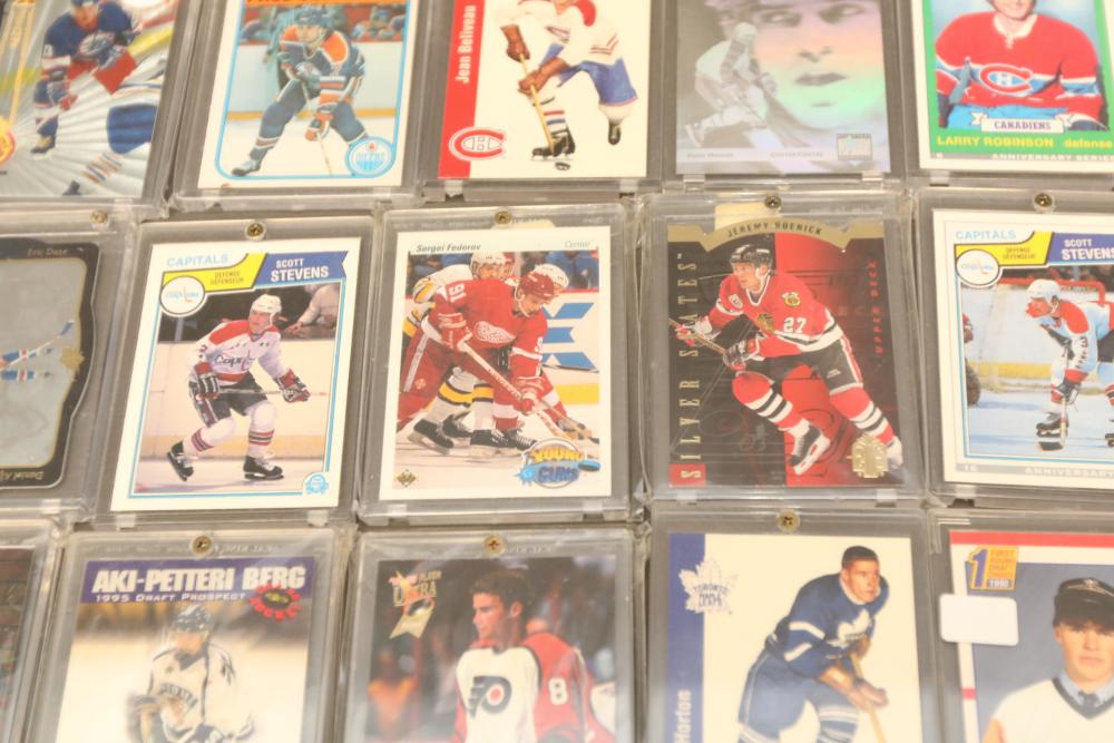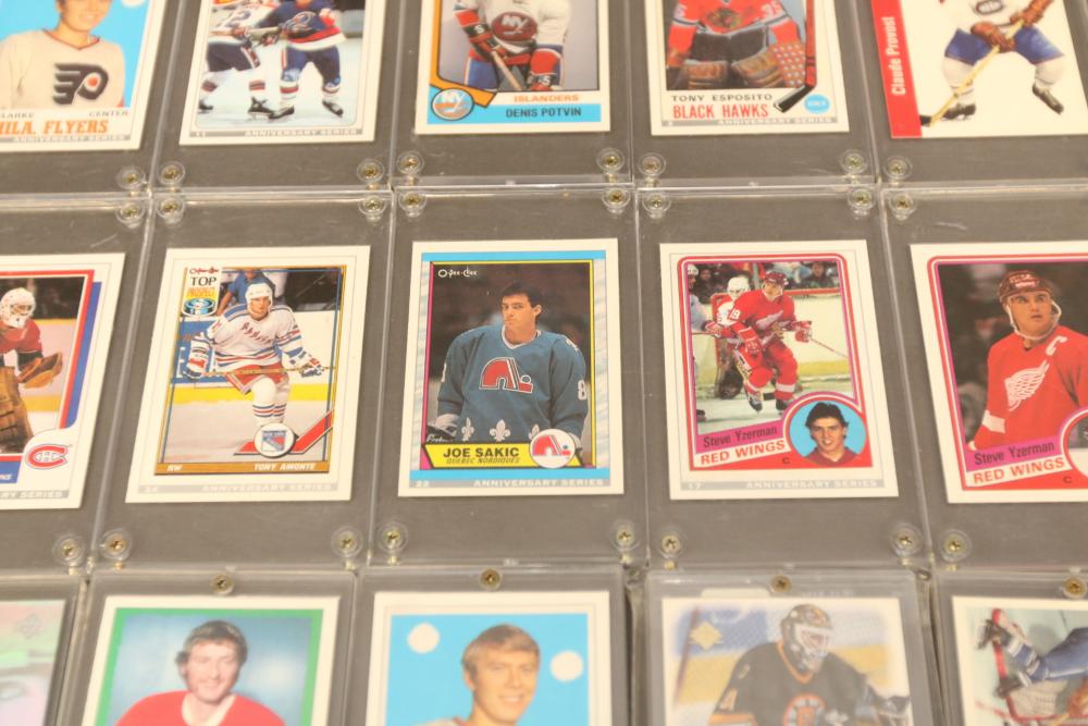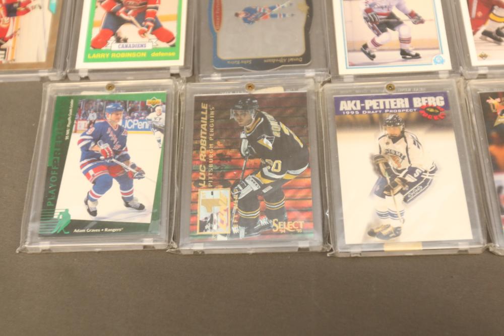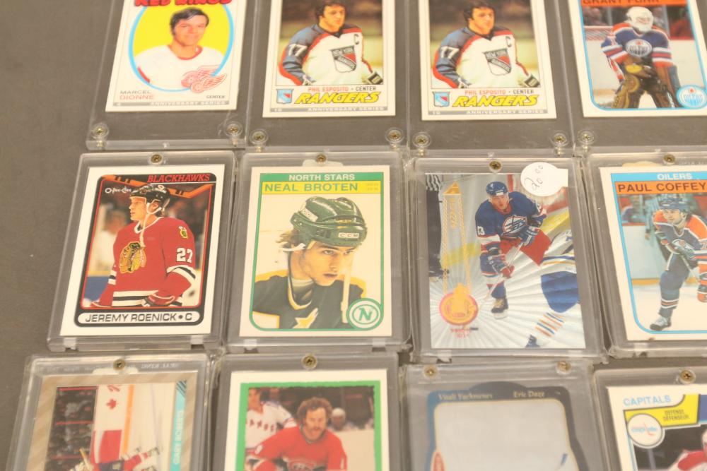 Over 60 slabbed Hockey cards of varying sets and years some names include Darryl Sittler, Bret Hull, Tony Amonte, Bob Clarke, Denis Potvin, Tony Esposito, Mike Bossy, Claude Provost, Patrick Roy, Adam Oates, Marcel Dionne, Grant Fuhr, Joe Sakic, Steve Yzerman, Jeremy Roenick, Neal Broten, Scott Stevens, Jaromir Jagr, etc.