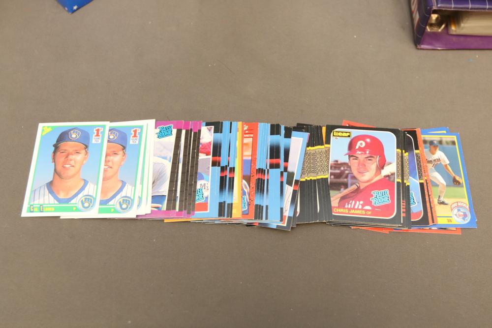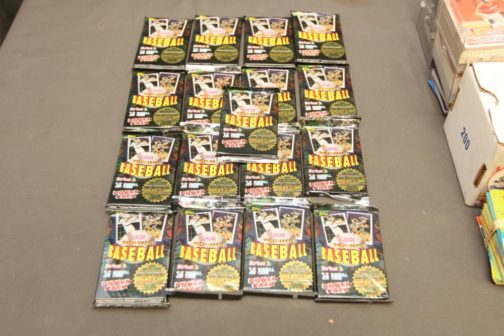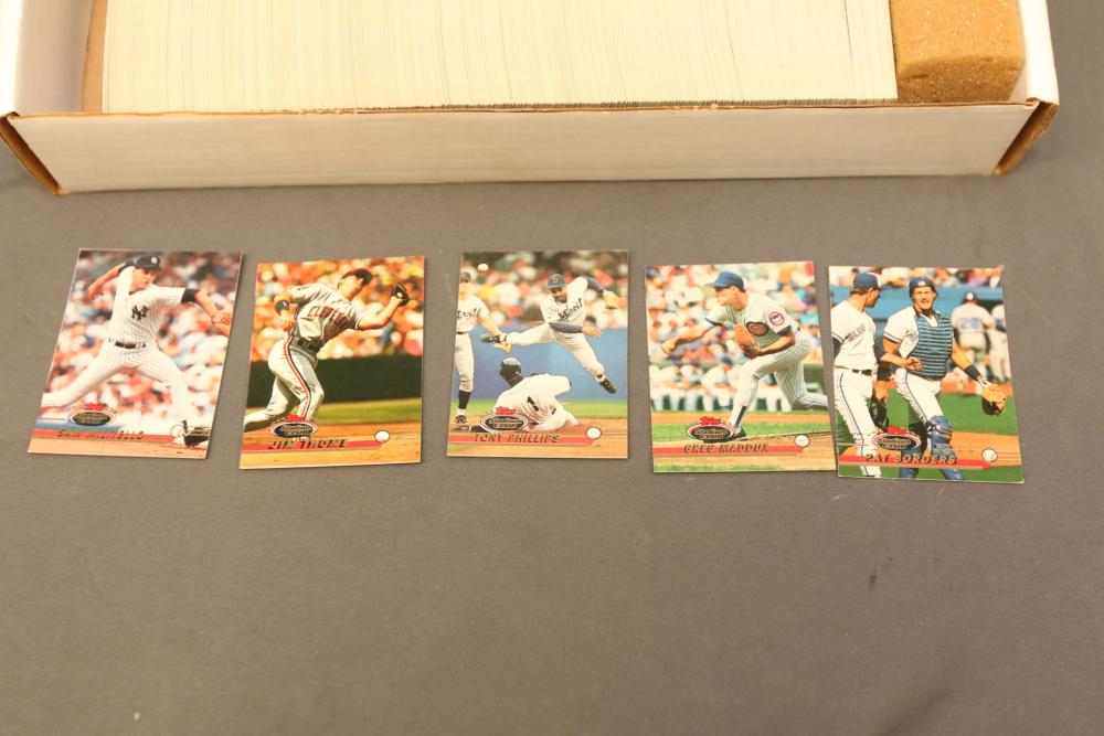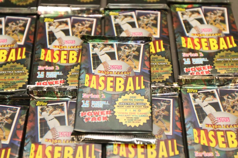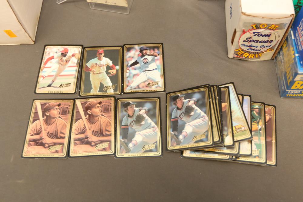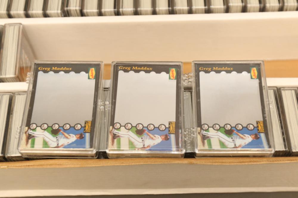Collection of baseball cards of varying sets and years. Includes some sealed sets and rookie cards. Some names Hubie Brooks, Fred Lynn, Rick Rhoden, Kevin Mcreynolds, Gary Sheffield, Robin Ventura, Tom Seaver, Roberto Clemente, Sandy Alomar, Rich Gossage, Greg Maddux