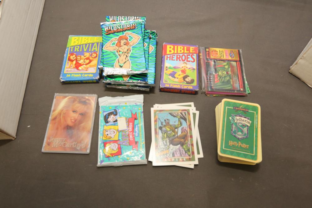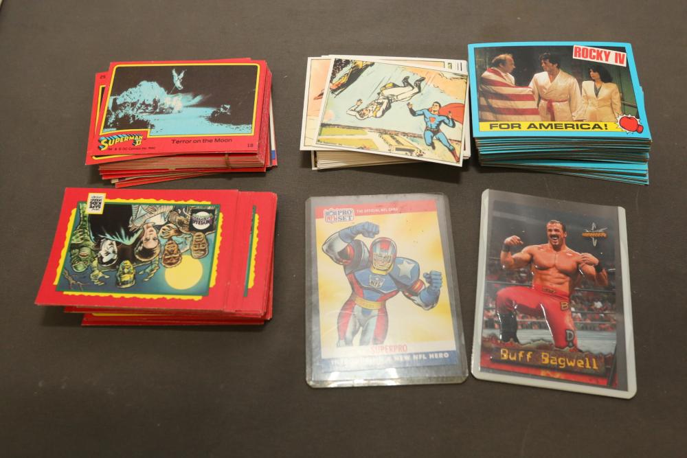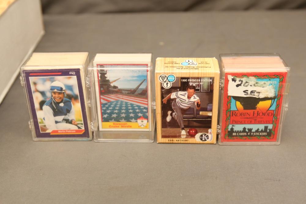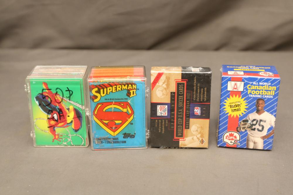 Collection of cards and memorabilia. Sets include Spiderman, bowling, movie, minor league baseball, horse jockeys, Canadian football league, soccer, bible, animal, music, etc.