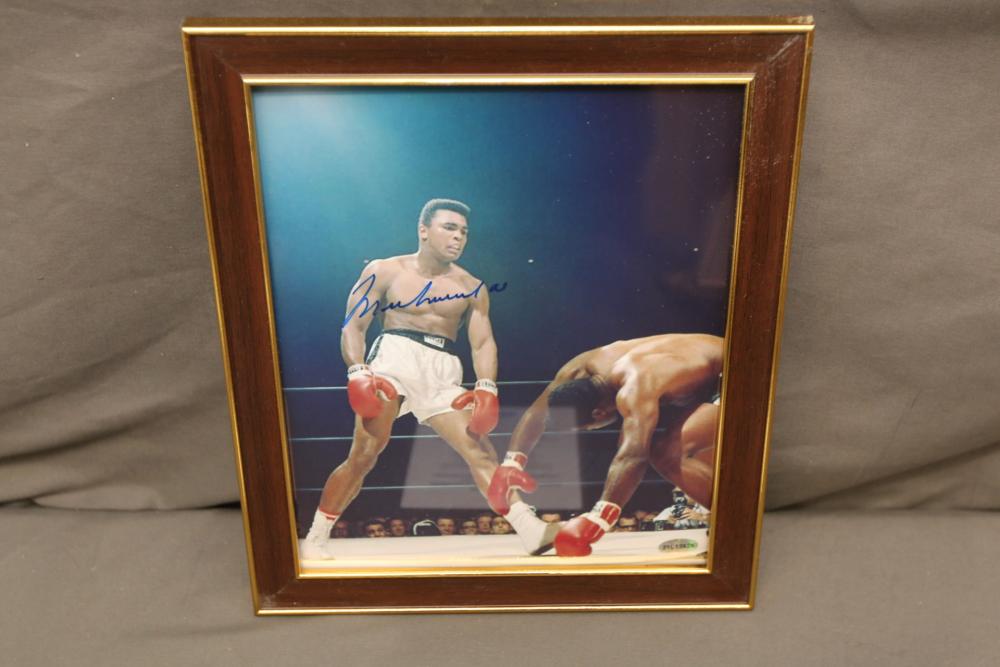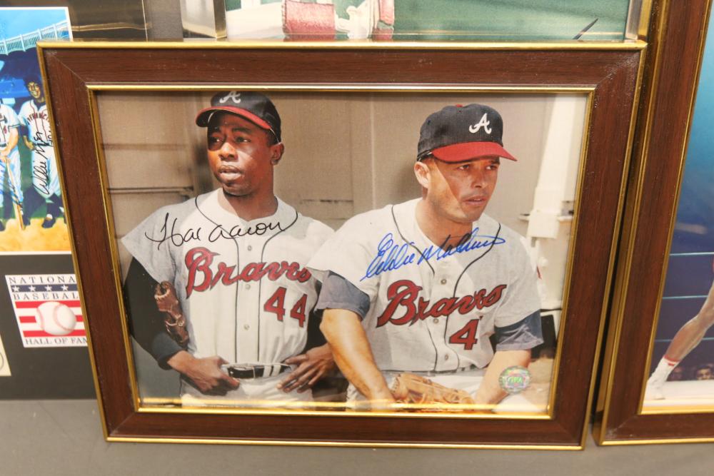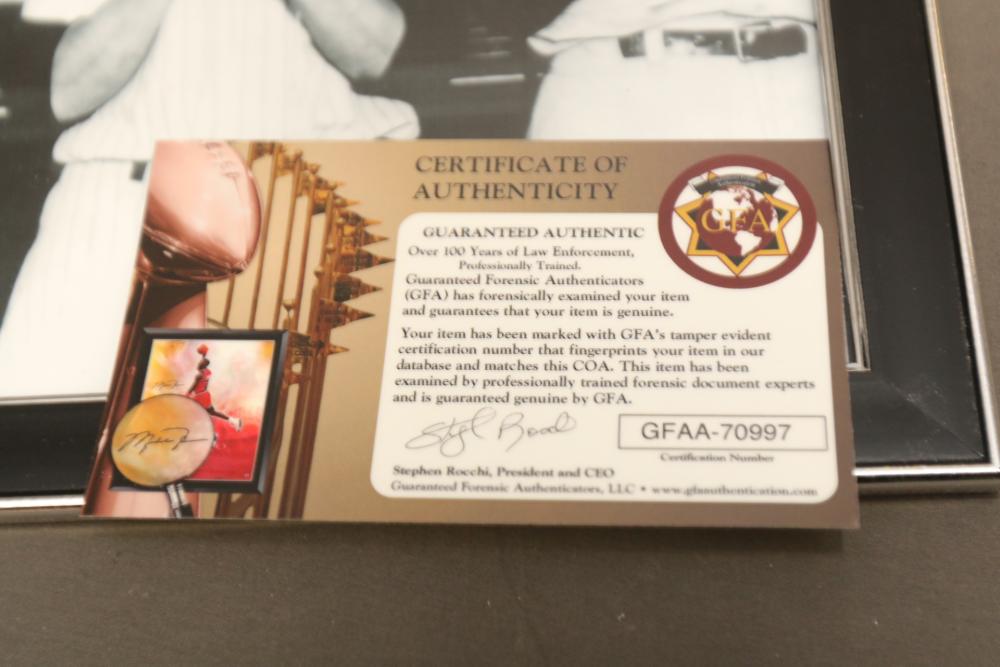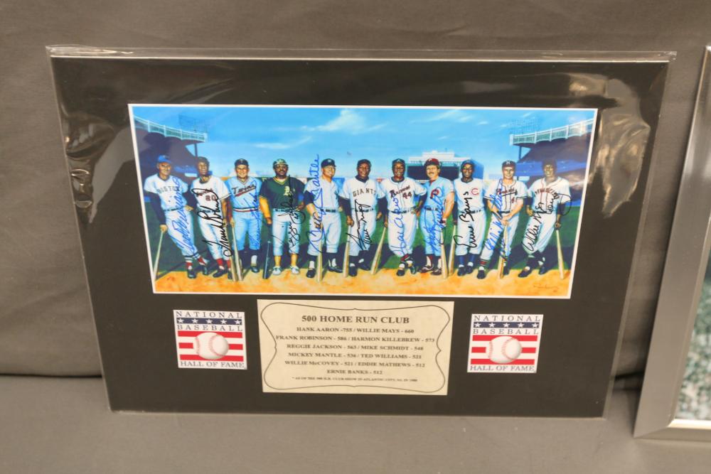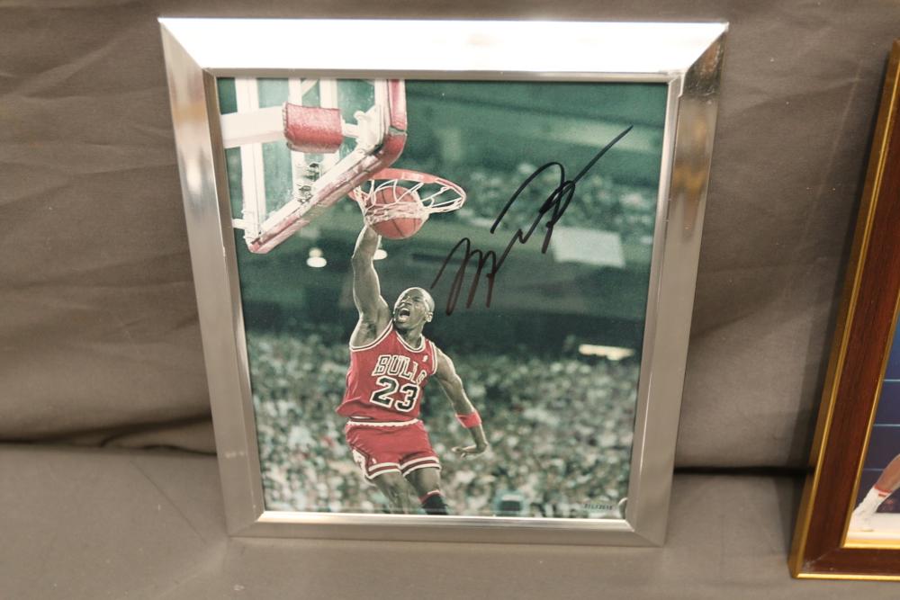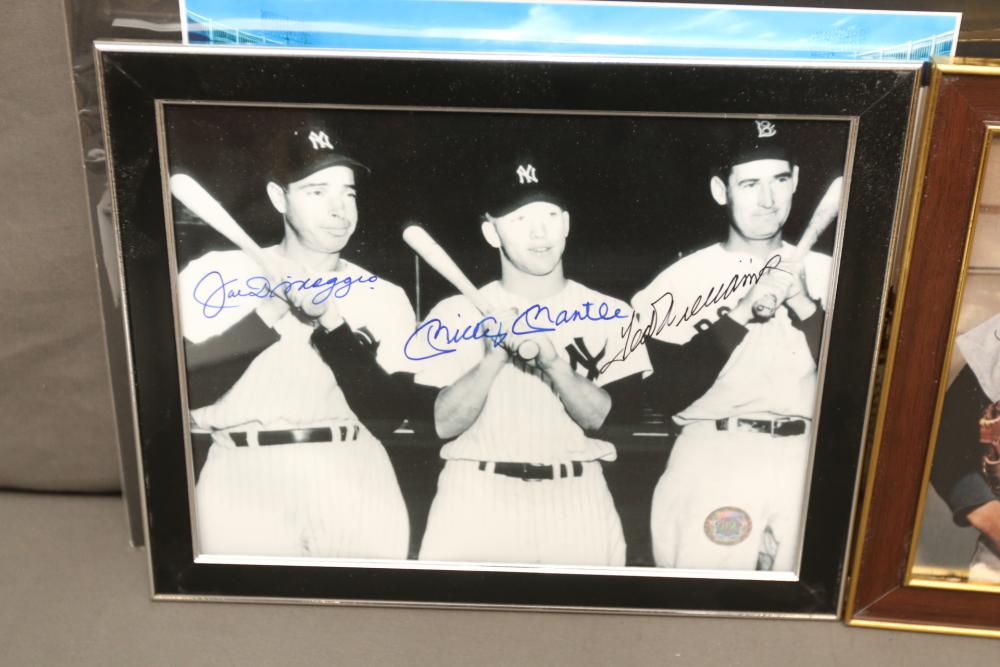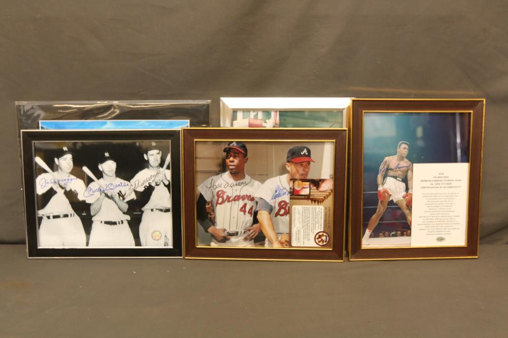 Photograph of Michael Jordan, Aaron/Matthews photograph, DiMaggio/Mantle/Williams photograph, Stan Musial photograph, Muhammad Ali photograph, and 500 home run club 11" x 14", all with signatures. After inspection, all appear to be reproduction.