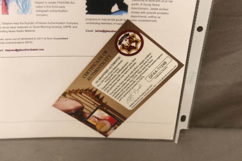 Items include PSA slabbed/graded "1993 Ultra Michael Jordan Scoring kings" basketball card; Michael Jordan basketball/baseball cards varying in years; Kobe Bryant/Shaquille O'Neal basketball cards varying in years; PSA slabbed/graded baseball cards; Wayne Gretzky/Mario Lemieux hockey cards varying in years; collection of Mickey Mantle items incl photo signed "Mickey Mantle" w/ COA on reverse; Lou Gehrig baseball cards from various sets w/ commemorative Lou Gehrig baseball w/ printed signature; NFL Hall of Famers cards incl Dan Marino, Emmett Smith, John Elway, etc.; New York Yankees memorabilia and so much more! Items are located in Pleasant Valley, NY.