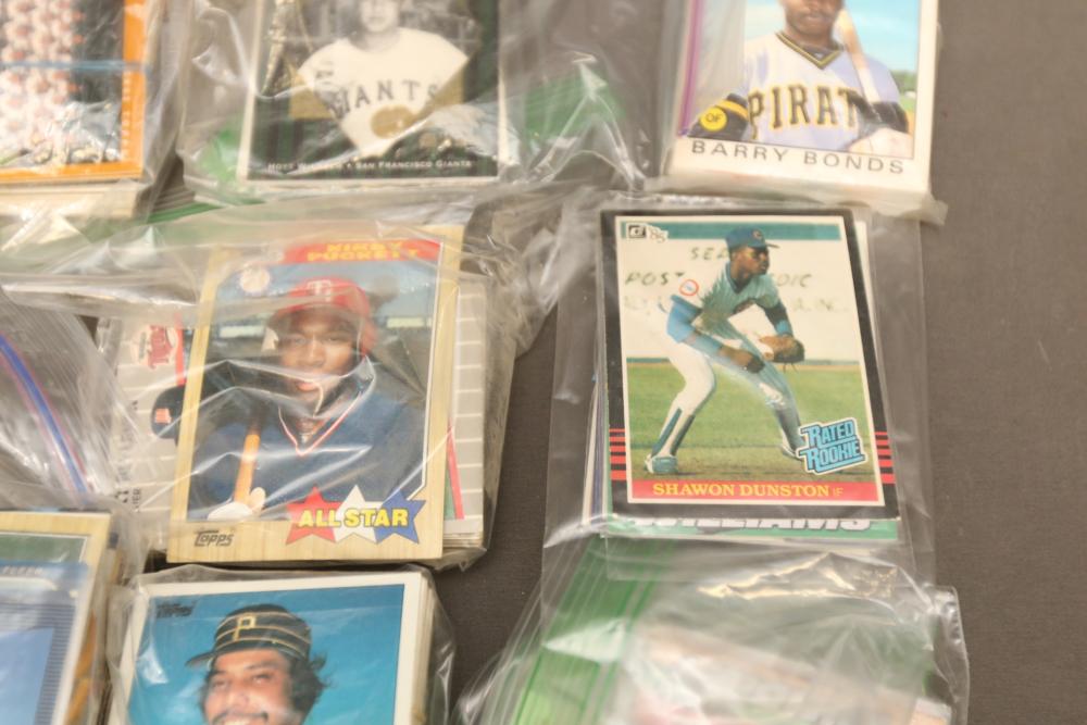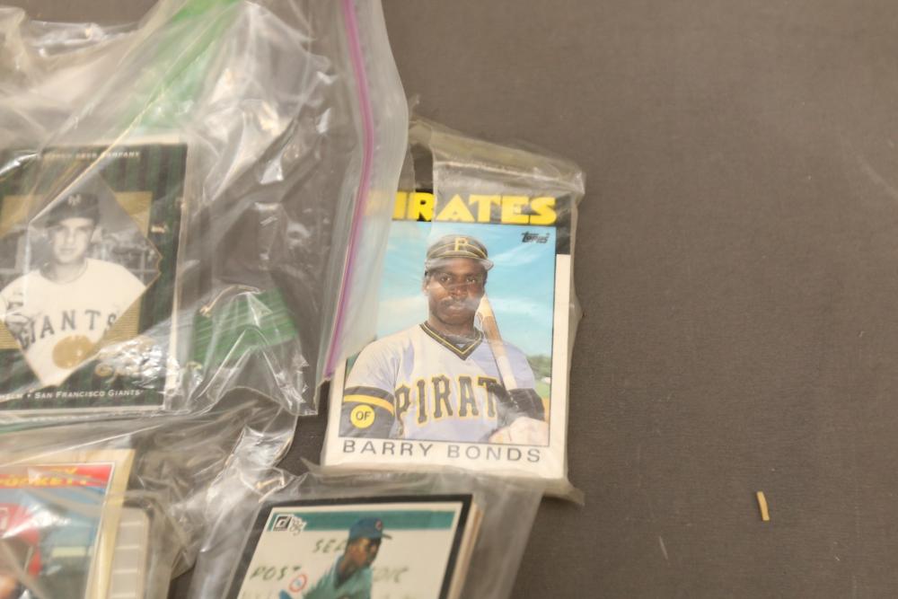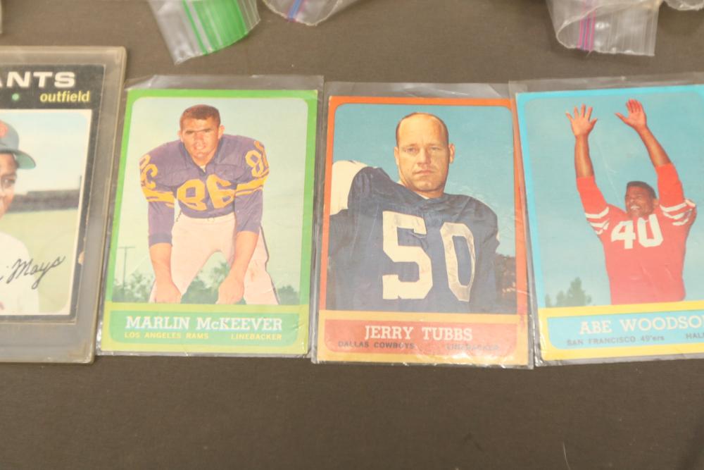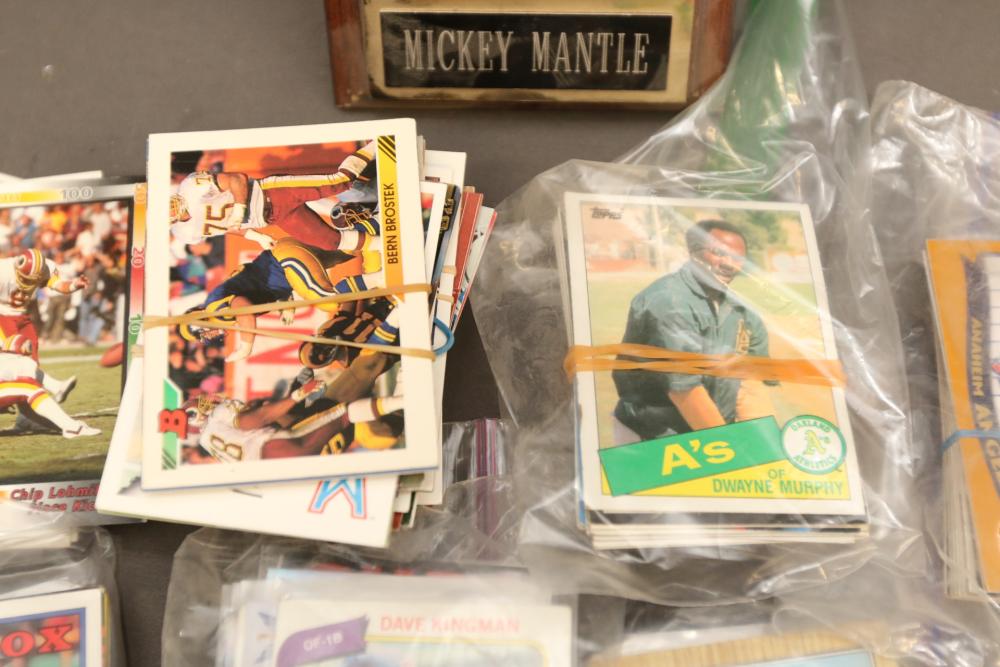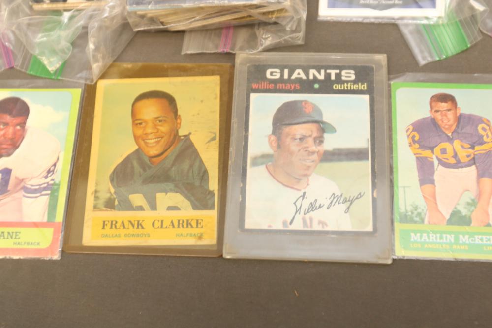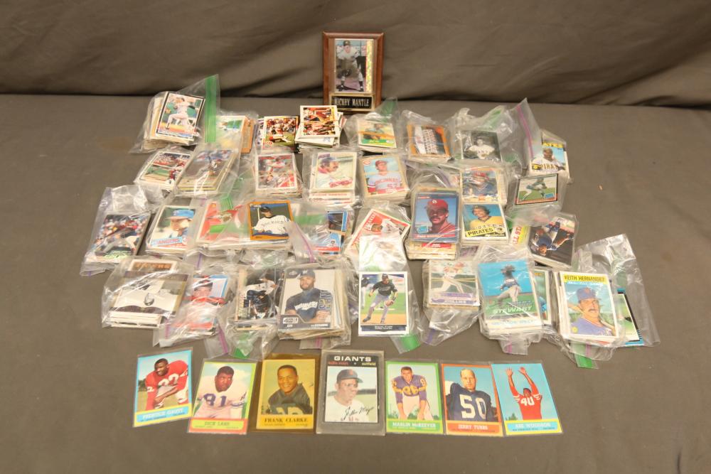 Sports cards including Mickey Mantle, Prentice Gautt, Dick Lane, Frank Clarke, Willie Mays, Marlin McKeever, Jerry Tubbs, Abe Woodson, Barry Bonds, Shawon Duston, Andre Dawson, Mike Greenwell, etc.