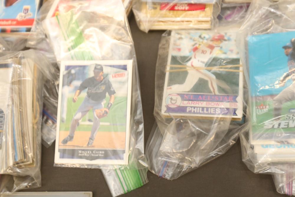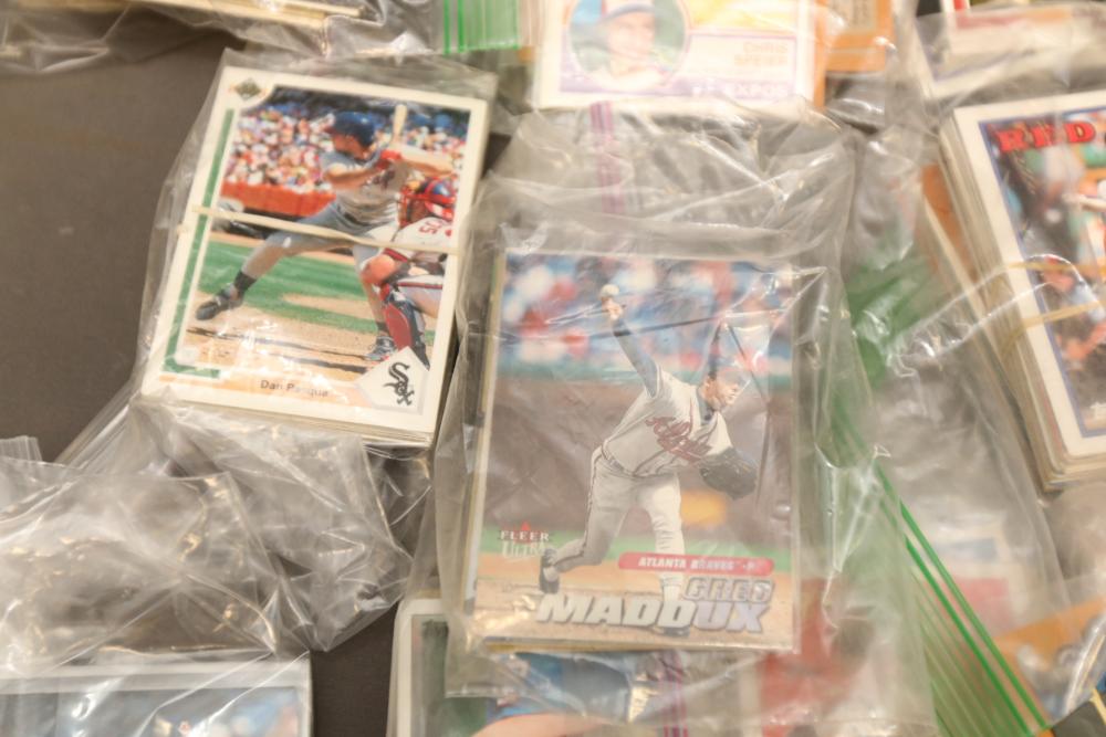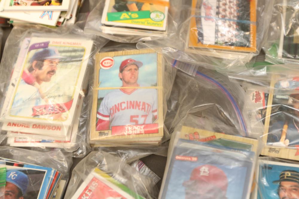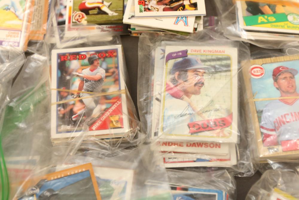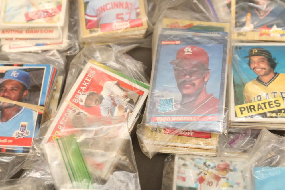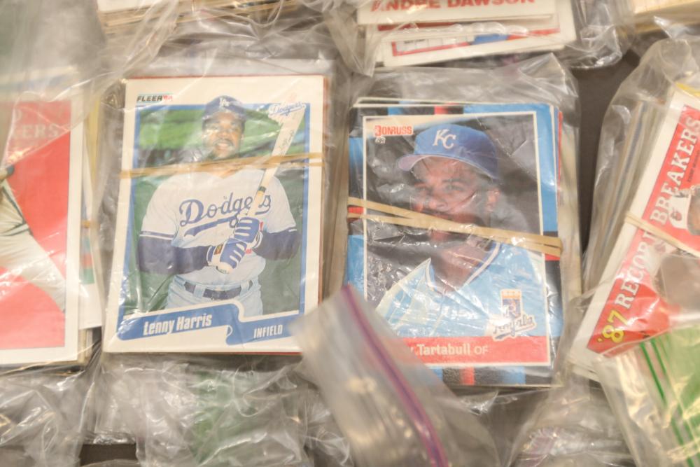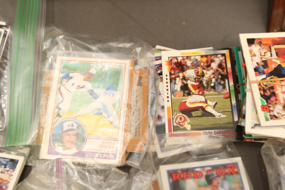 Sports cards including Mickey Mantle, Prentice Gautt, Dick Lane, Frank Clarke, Willie Mays, Marlin McKeever, Jerry Tubbs, Abe Woodson, Barry Bonds, Shawon Duston, Andre Dawson, Mike Greenwell, etc.