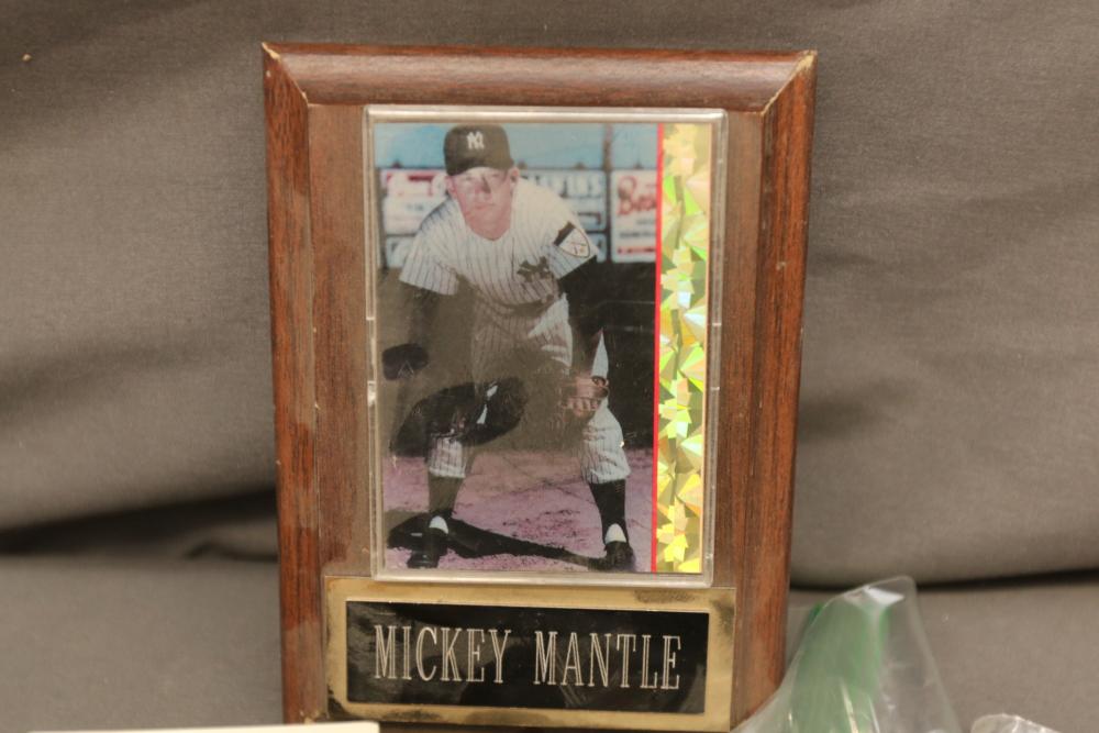 Items include PSA slabbed/graded "1993 Ultra Michael Jordan Scoring kings" basketball card; Michael Jordan basketball/baseball cards varying in years; Kobe Bryant/Shaquille O'Neal basketball cards varying in years; PSA slabbed/graded baseball cards; Wayne Gretzky/Mario Lemieux hockey cards varying in years; collection of Mickey Mantle items incl photo signed "Mickey Mantle" w/ COA on reverse; Lou Gehrig baseball cards from various sets w/ commemorative Lou Gehrig baseball w/ printed signature; NFL Hall of Famers cards incl Dan Marino, Emmett Smith, John Elway, etc.; New York Yankees memorabilia and so much more! Items are located in Pleasant Valley, NY.