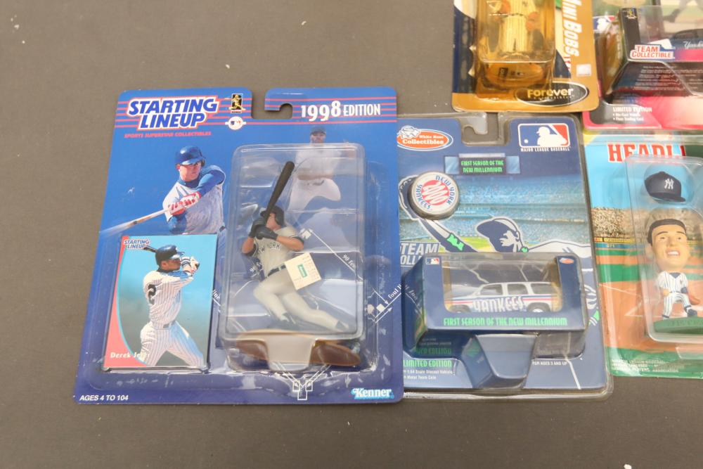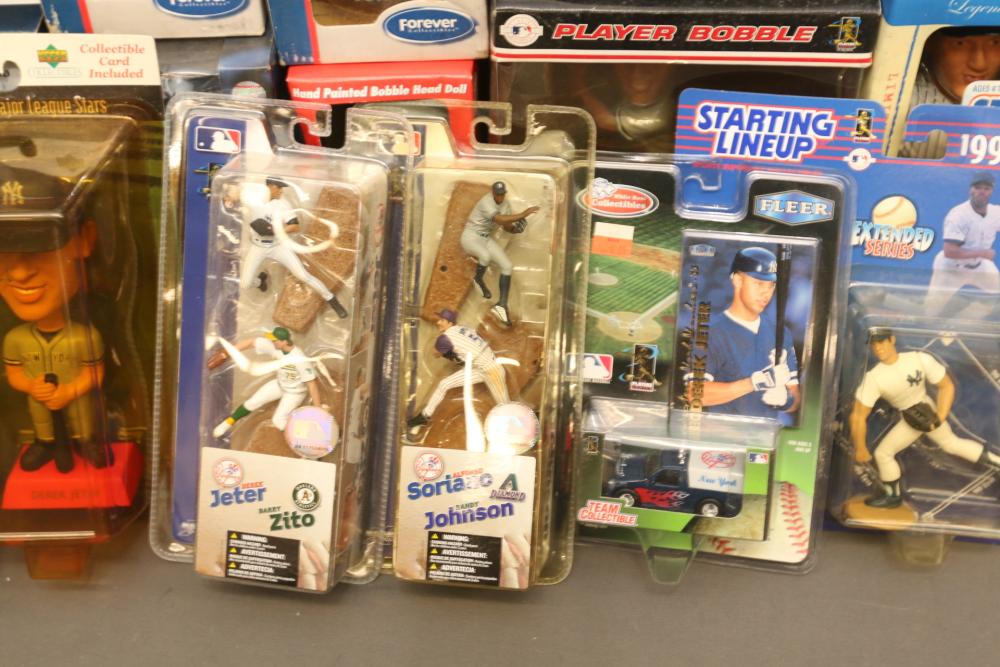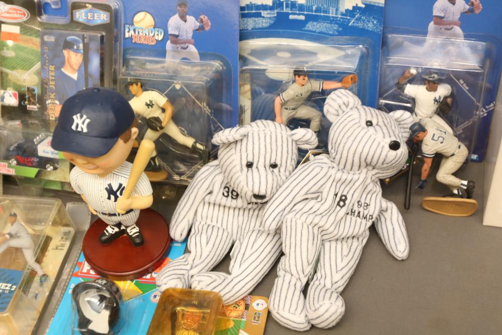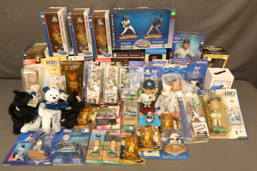 Sports collectables including Soriano/Johnson, Jeter, beanie babies, Starting Lineup 1998 edition, Alex Rodriguez, Randy Johnson, Jeter/Zito, Big Heads, bobble heads, Yankee Stadium Exclusive limited edition collectible, Starting Lineup 2 Classic Doubles Jeter/Vizquel, etc. Pickup only.