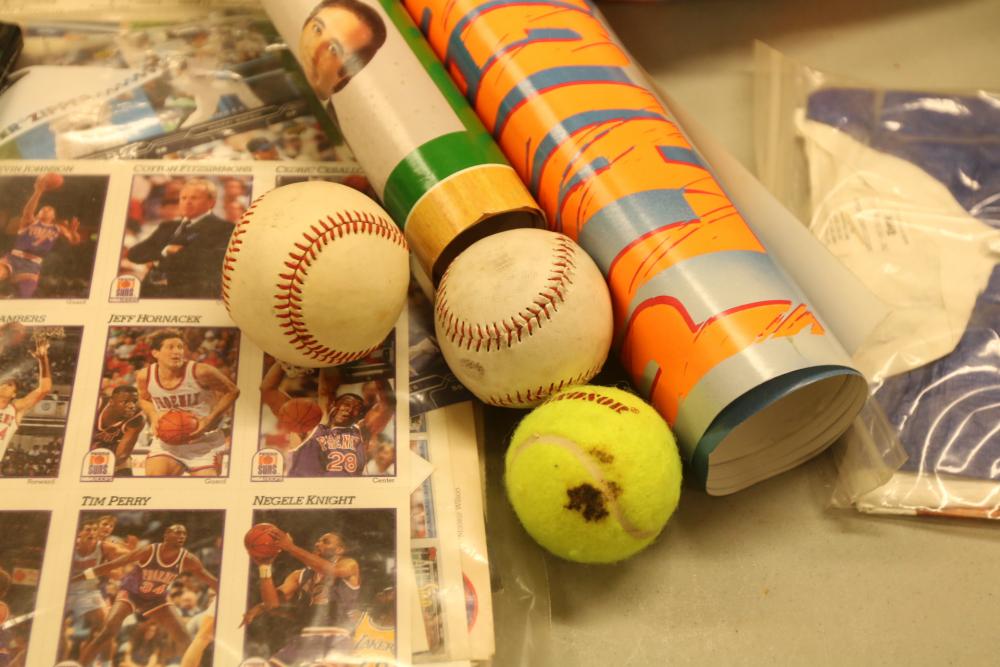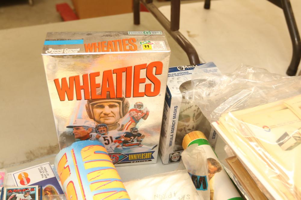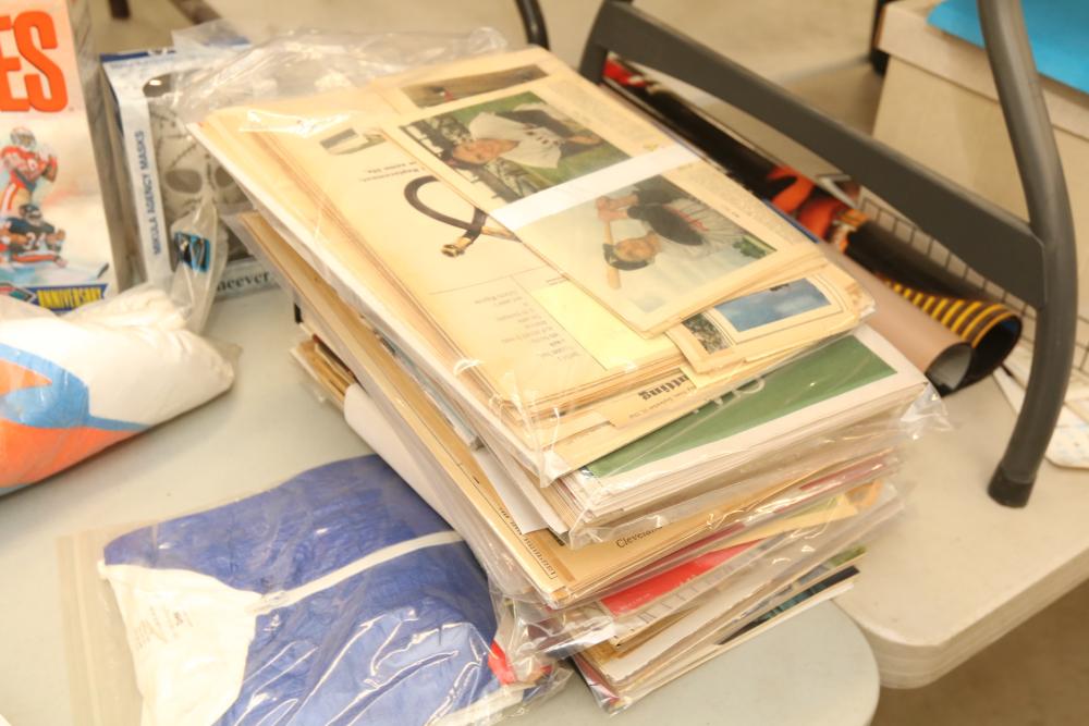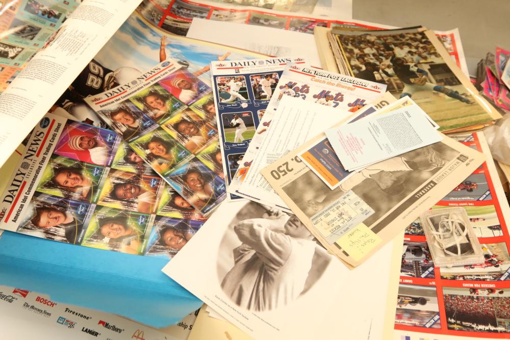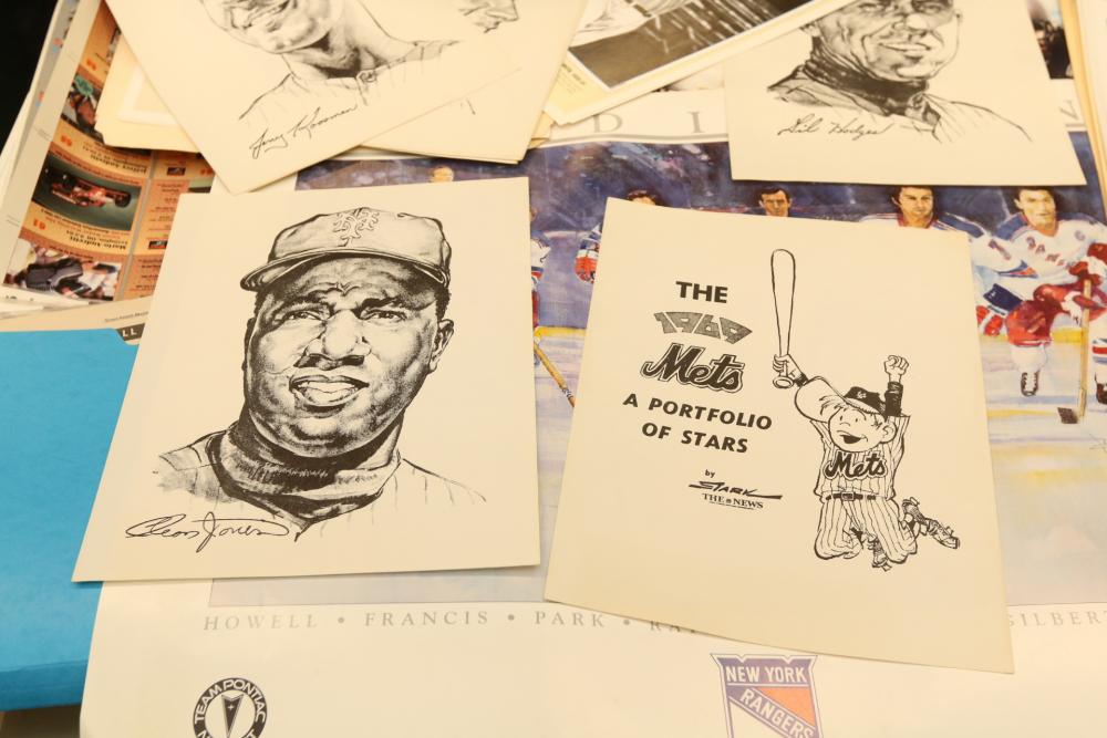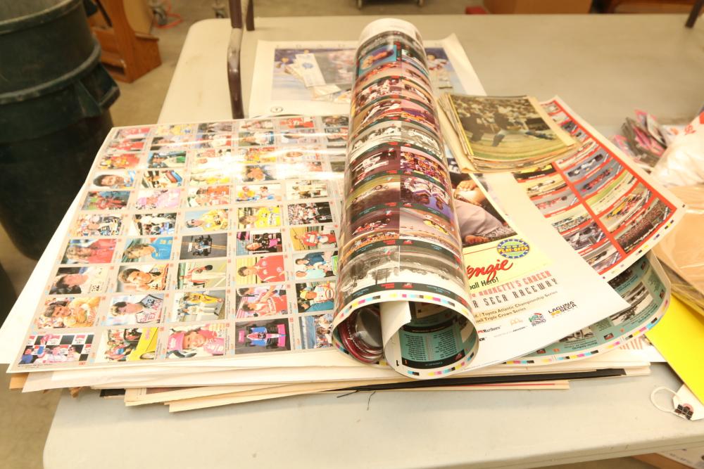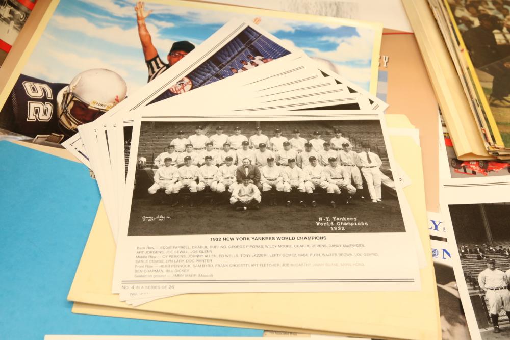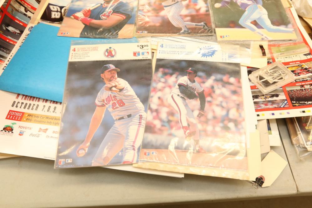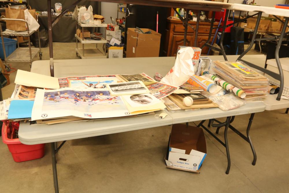 Collection of sports memorabilia including posters, newspapers, framed pictures, and cards from various sports. Pick up only.