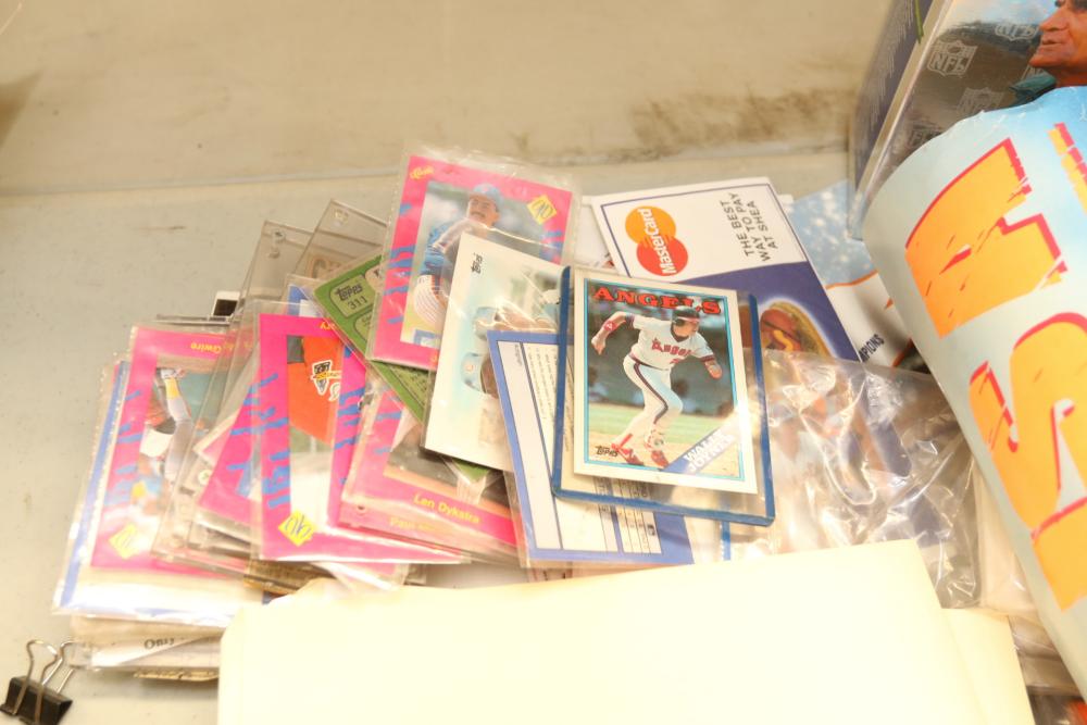 Items include PSA slabbed/graded "1993 Ultra Michael Jordan Scoring kings" basketball card; Michael Jordan basketball/baseball cards varying in years; Kobe Bryant/Shaquille O'Neal basketball cards varying in years; PSA slabbed/graded baseball cards; Wayne Gretzky/Mario Lemieux hockey cards varying in years; collection of Mickey Mantle items incl photo signed "Mickey Mantle" w/ COA on reverse; Lou Gehrig baseball cards from various sets w/ commemorative Lou Gehrig baseball w/ printed signature; NFL Hall of Famers cards incl Dan Marino, Emmett Smith, John Elway, etc.; New York Yankees memorabilia and so much more! Items are located in Pleasant Valley, NY.