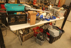 Items include oxygen/acetylene cutting torch; BMW straight six engine; BigWhiteShark metal cutting wheel; Dyna-Glo Pro 80,000BTU kerosene heater; Dewalt 4-1/2" wired angle grinder; propane tanks; automotive interior parts; Homelite gas powered leaf blower; Sears hand grinder; Viking Equipment hydraulic engine hoist; Tillman welding jacket; horizontal band saw; air hoses/couplers/jumper cables; flap discs; tires; pressure washers; Nug Smashers; pvc pipe fittings; Elmo Rieetschle vacuum pump; Craftsman rooling tool box; Marvin 12 lite doors; 18" BMW five lug rims 8Jx18EH2; Hilti cordless impact driver; Stanley miter box; Better Built diamond plate truck bed box; FarmTek jump box; clutch kit; Fulton fan assembly; hedge trimmer; TIF refrigerant leak detector; rotors; Steedaire cast iron series air compressor; Rigid pipe threader/wet-dry vac; Poly ISO insulation; hand tools and more. Items are located in Pleasant Valley, NY.