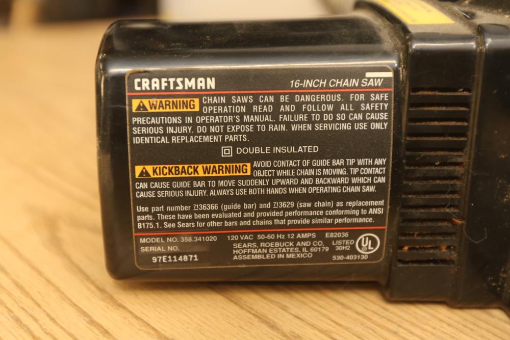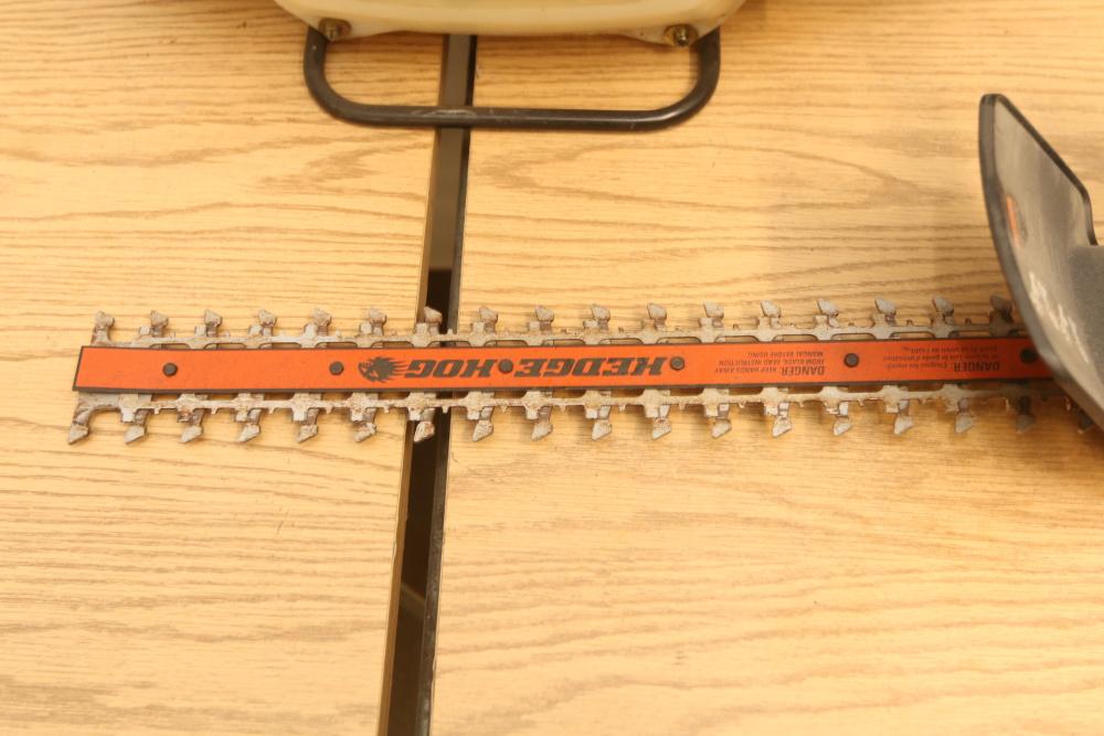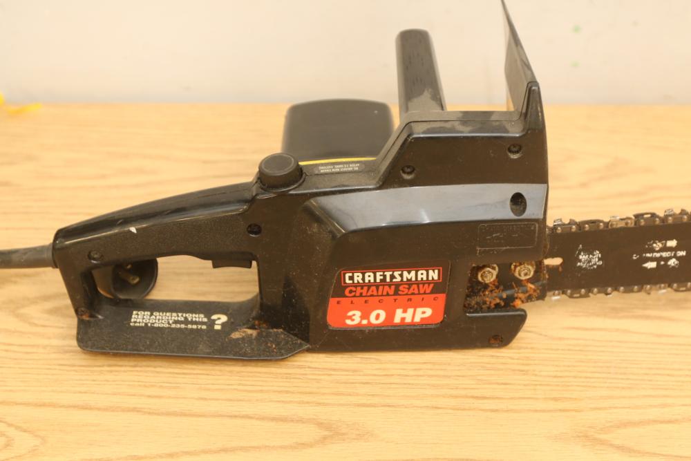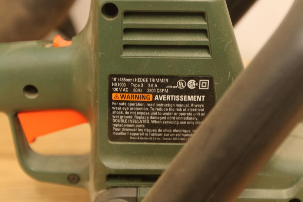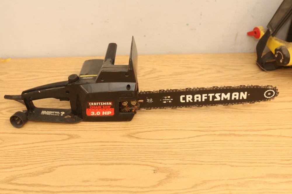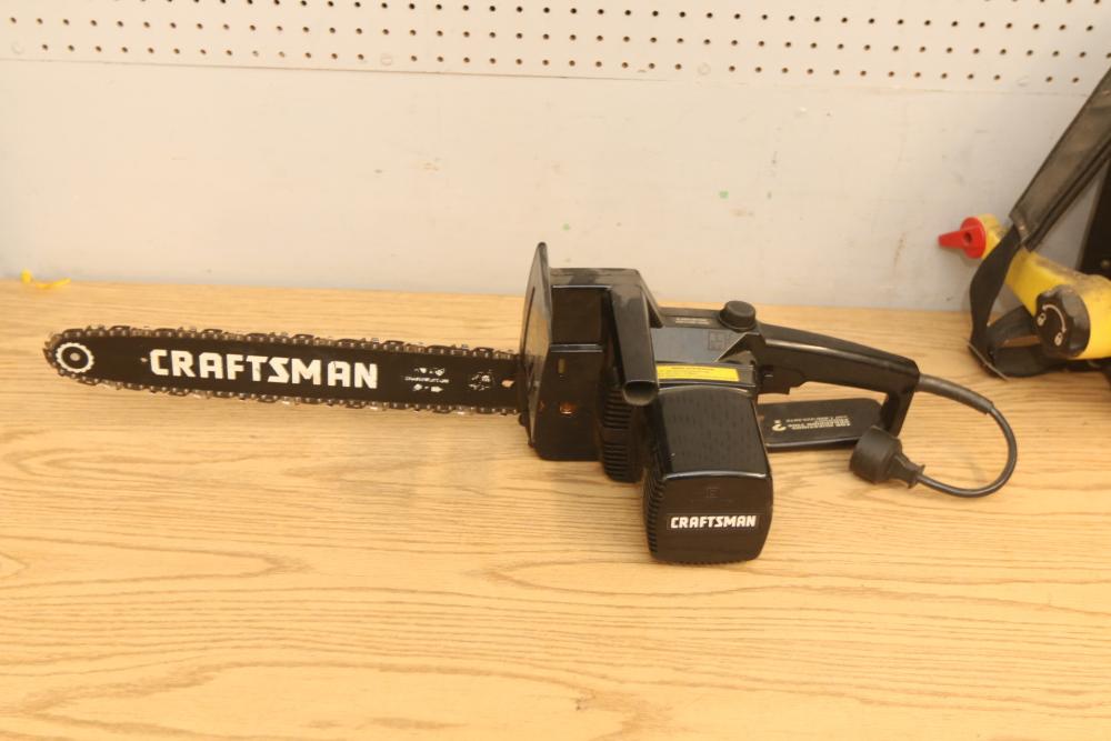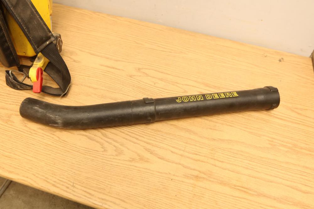 Landscaping equipment incl John Deer 5E gas backpack leaf blower, wired Craftsman 3hp chain saw with a 16" bar model 358.341020, Black & Decker Hedge Hog 18" hedge trimmer model HS1000. Pickup only.