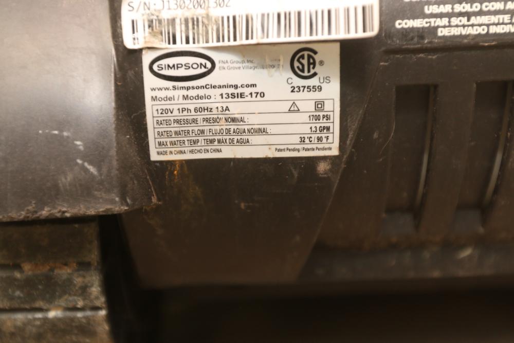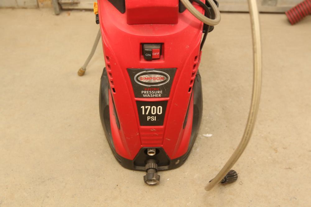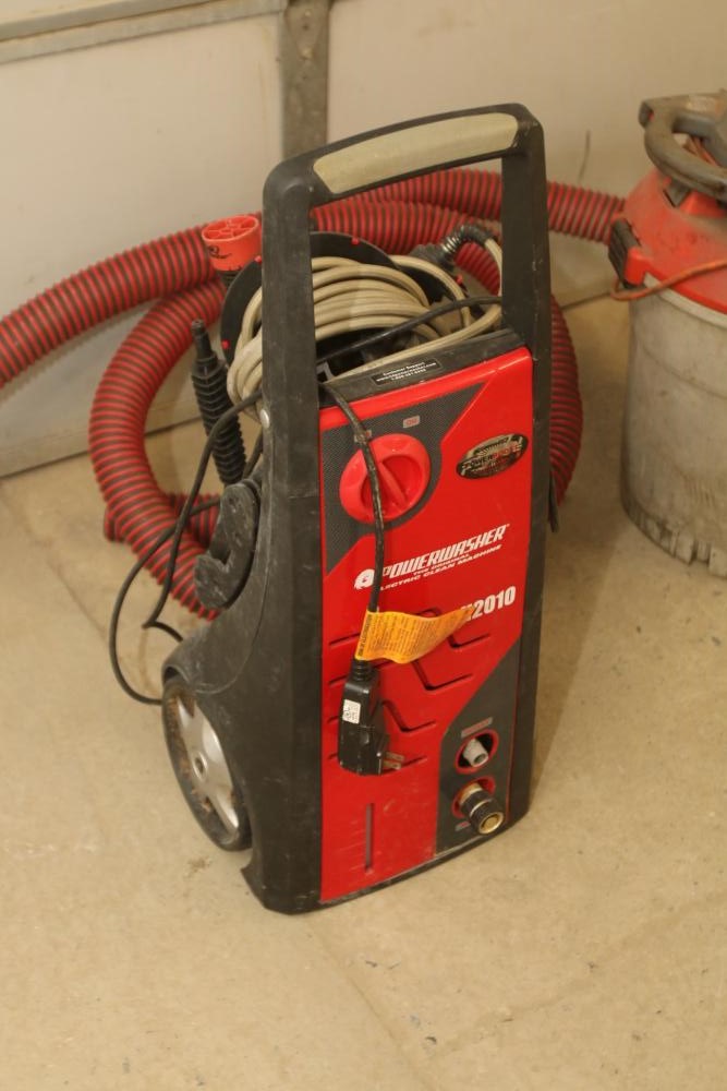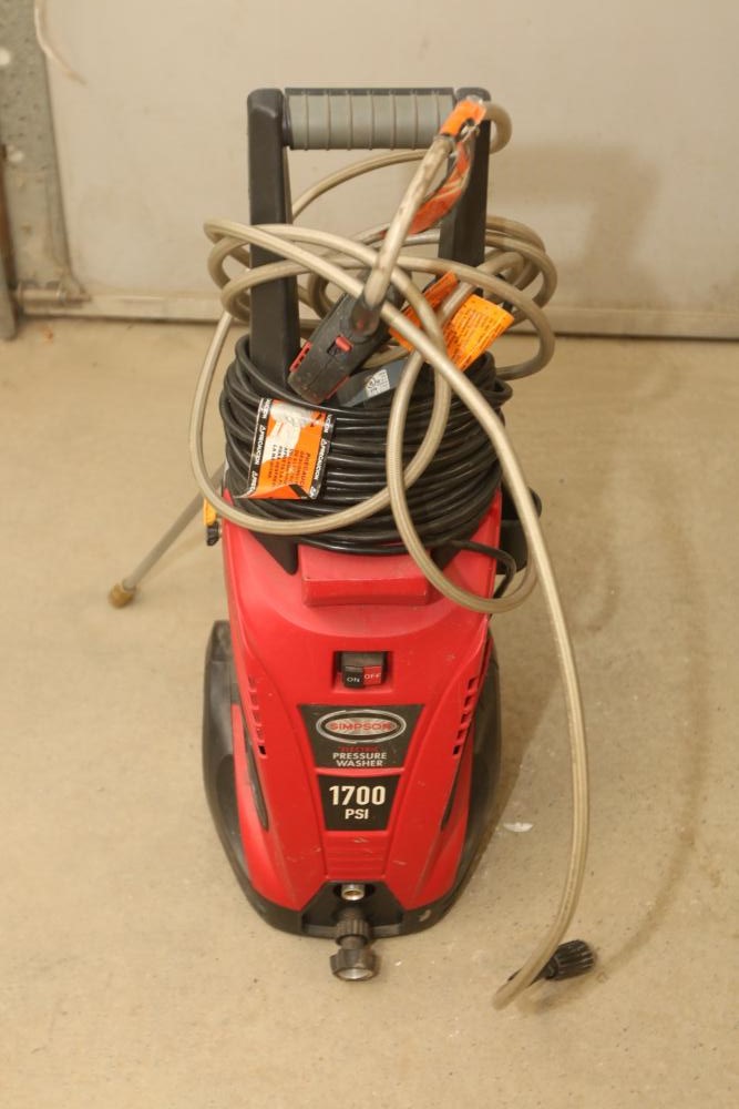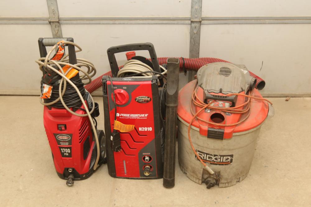 Two pressure washers incl Simpson electric pressure washer 1700psi, model 13SIE-170 single phase, and Power washer model H2010 1800psi single phase, also incl Ridgid 16 gallon wet/dry vac 6.5Hp. Pickup only.