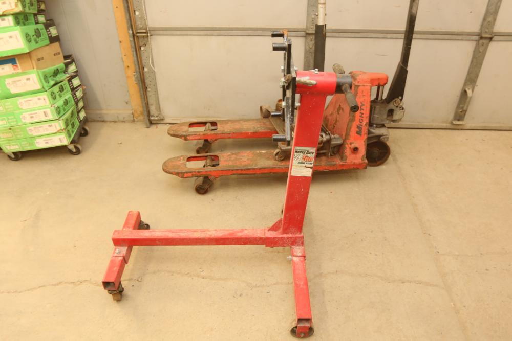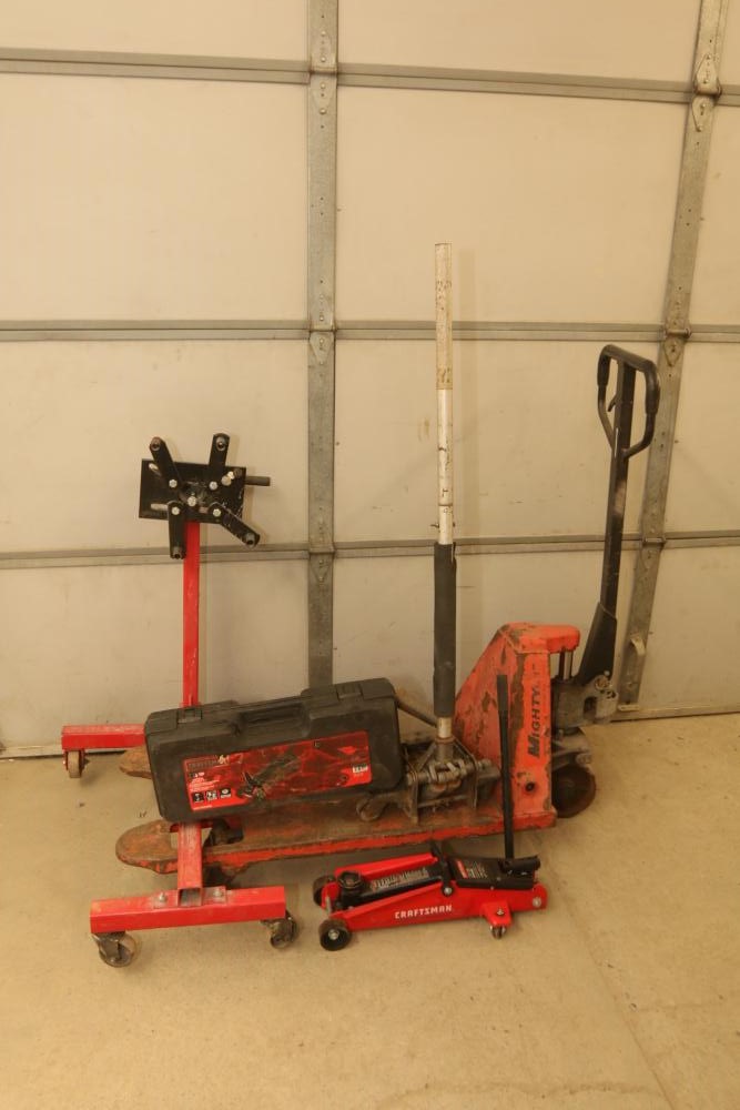 Craftsman 2.25 ton hydraulic trolley jack, Pittsburgh Heavy Duty 1/2 ton engine stand, Pittsburgh hydraulic floor jack, Mighty hydraulic pallet jack, etc. Pickup only.
