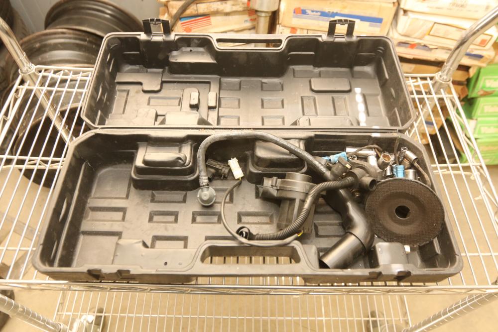 Items include oxygen/acetylene cutting torch; BMW straight six engine; BigWhiteShark metal cutting wheel; Dyna-Glo Pro 80,000BTU kerosene heater; Dewalt 4-1/2" wired angle grinder; propane tanks; automotive interior parts; Homelite gas powered leaf blower; Sears hand grinder; Viking Equipment hydraulic engine hoist; Tillman welding jacket; horizontal band saw; air hoses/couplers/jumper cables; flap discs; tires; pressure washers; Nug Smashers; pvc pipe fittings; Elmo Rieetschle vacuum pump; Craftsman rooling tool box; Marvin 12 lite doors; 18" BMW five lug rims 8Jx18EH2; Hilti cordless impact driver; Stanley miter box; Better Built diamond plate truck bed box; FarmTek jump box; clutch kit; Fulton fan assembly; hedge trimmer; TIF refrigerant leak detector; rotors; Steedaire cast iron series air compressor; Rigid pipe threader/wet-dry vac; Poly ISO insulation; hand tools and more. Items are located in Pleasant Valley, NY.