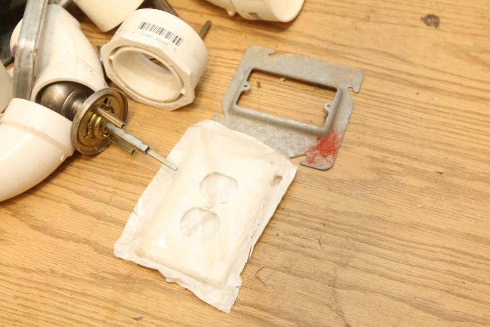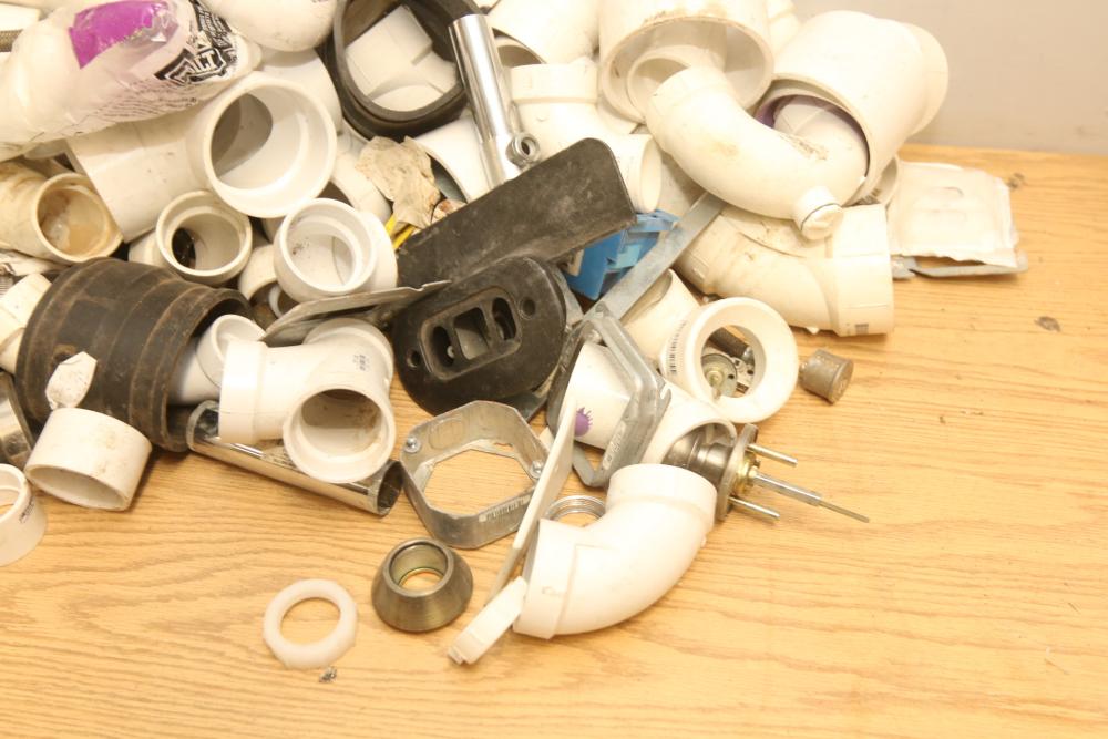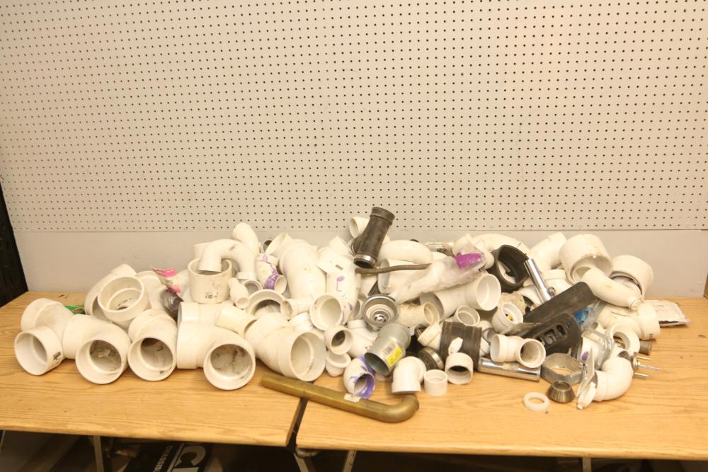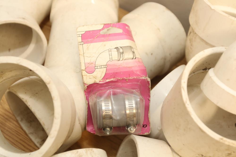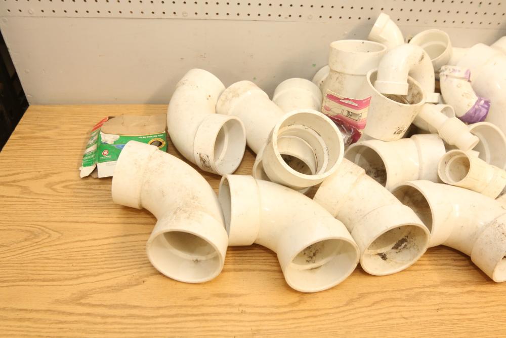 PVC pipe fittings incl 90 degree elbows, 45 degree elbows, Tees, couplings, etc. Pickup only.