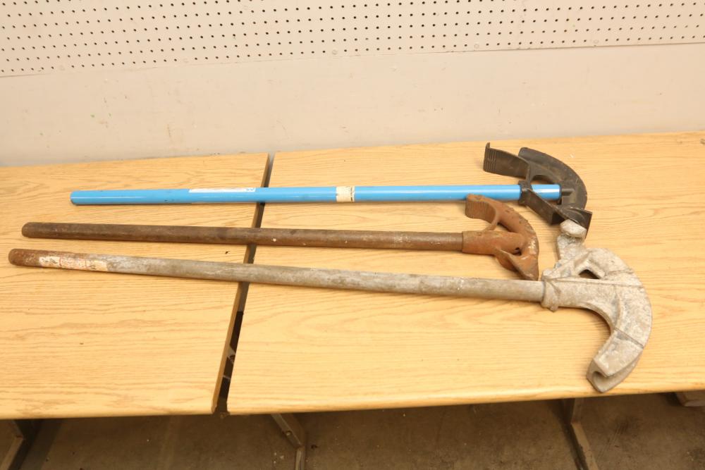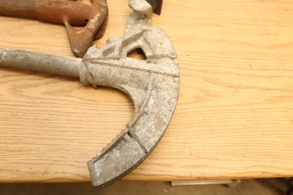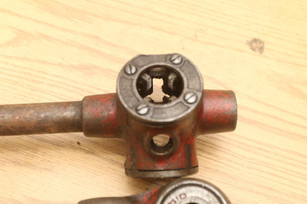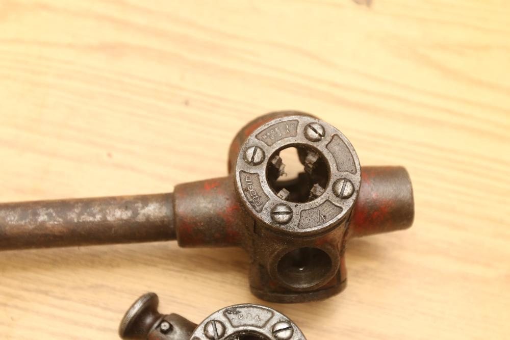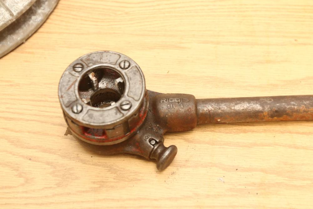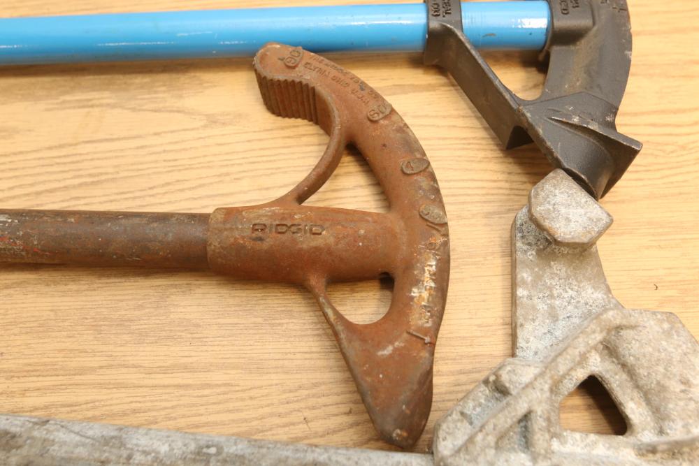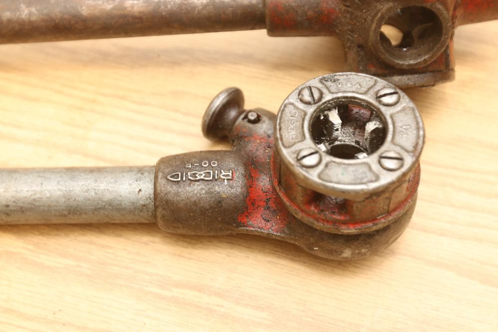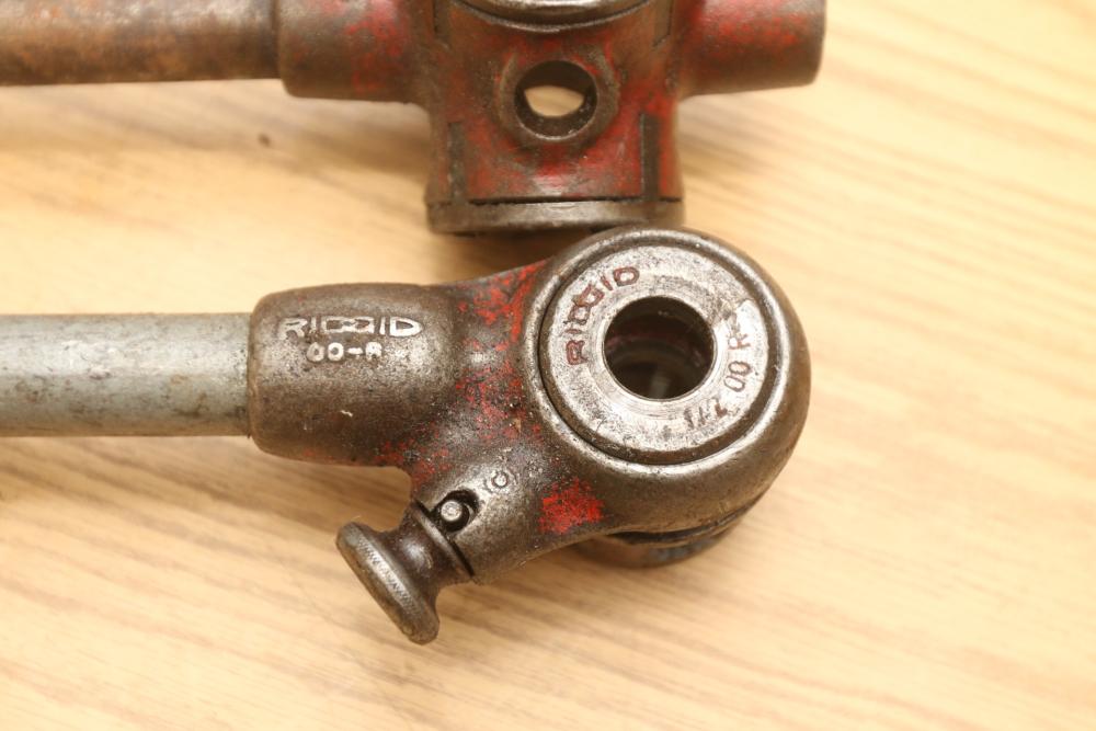 Hand tools incl pipe benders, some marked "1/2 EMT only", "Gardner No. 921", "Ridgid", "Ideal 74-003", also incl two Ridgid ratchet threaders. Pickup only.