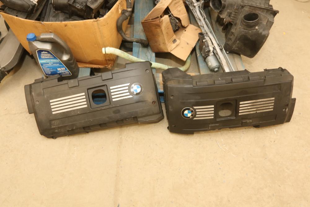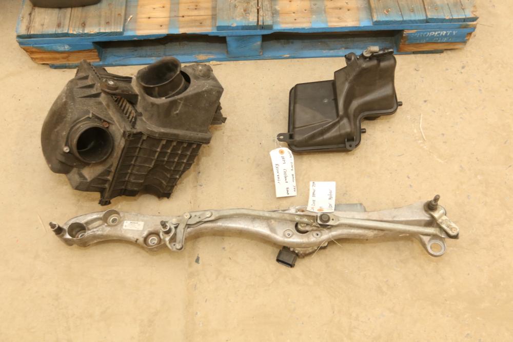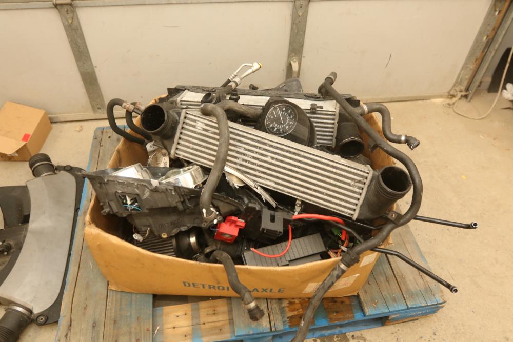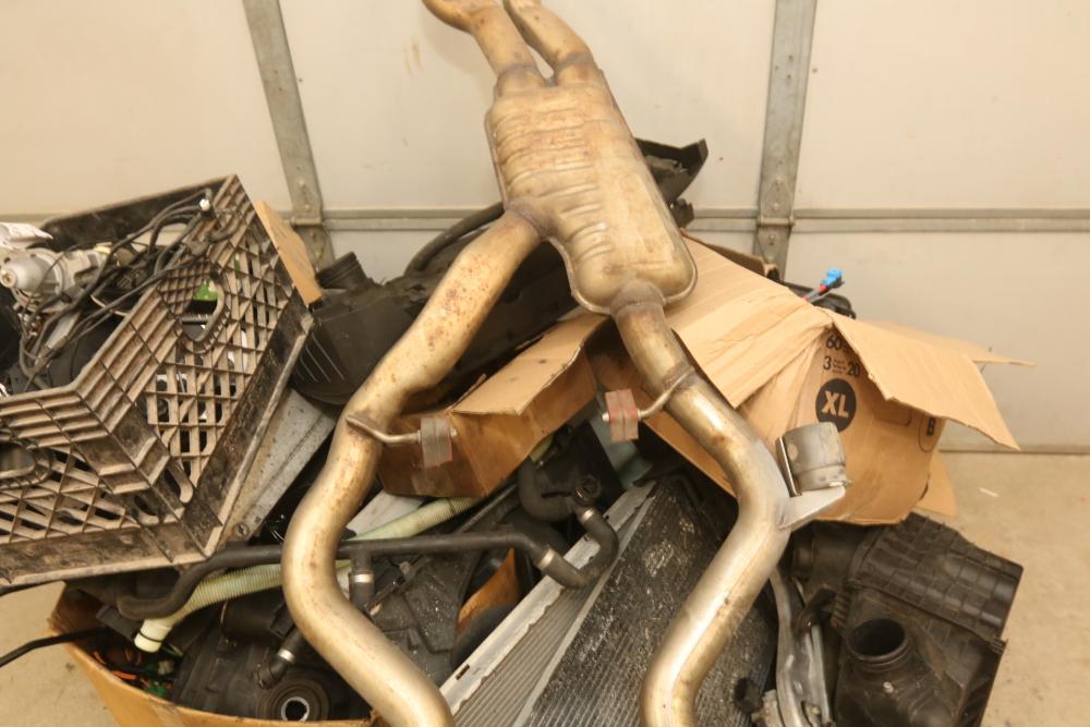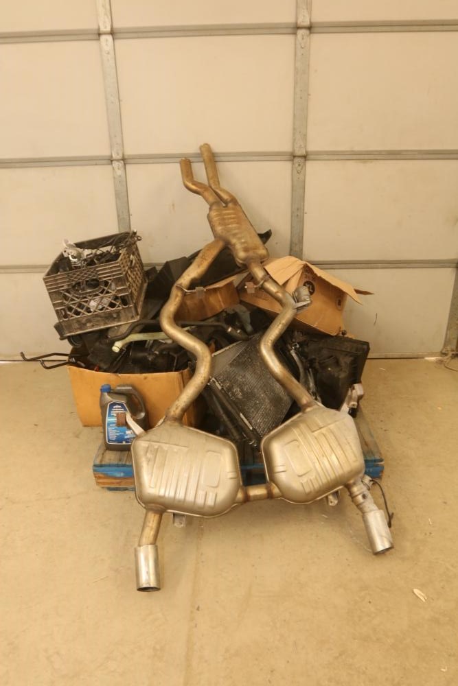 Automotive parts believed to be BMW incl exhaust system, radiators, rear view mirrors, starter fans, engine bay covers, air intake box, wiper motor, coolant tank reservoir, speakers, coolant lines, etc. Pickup only.