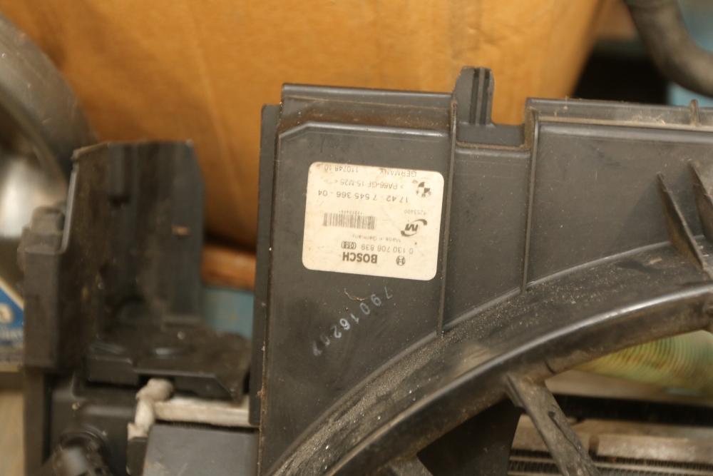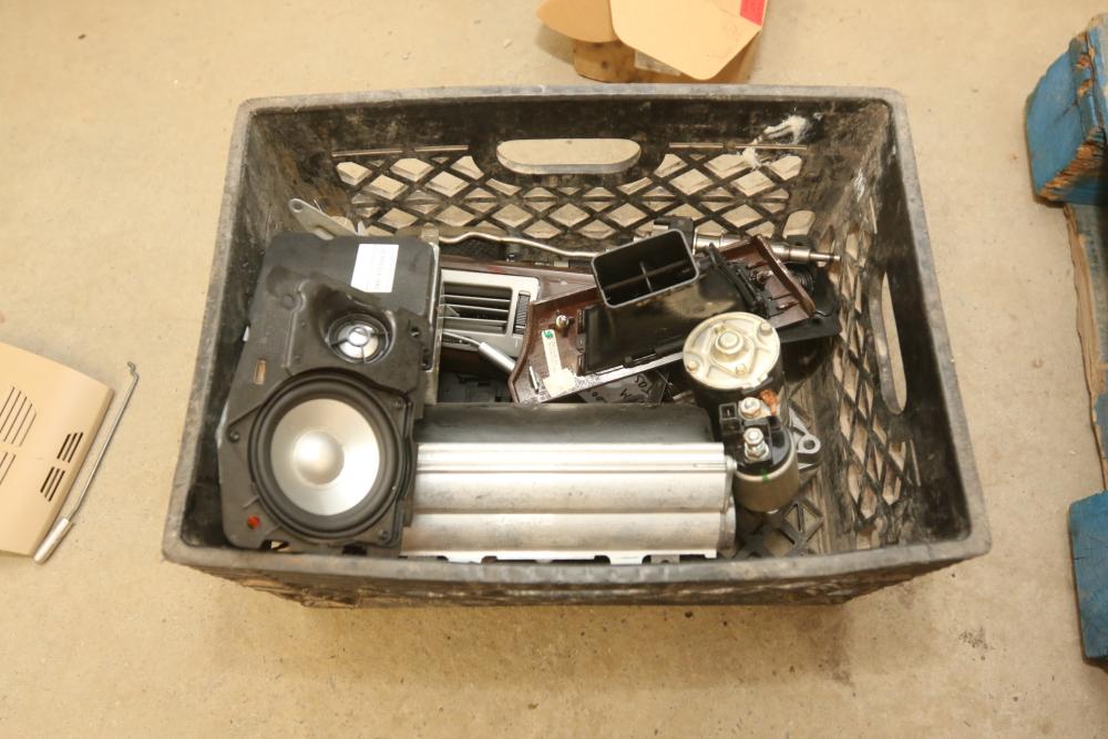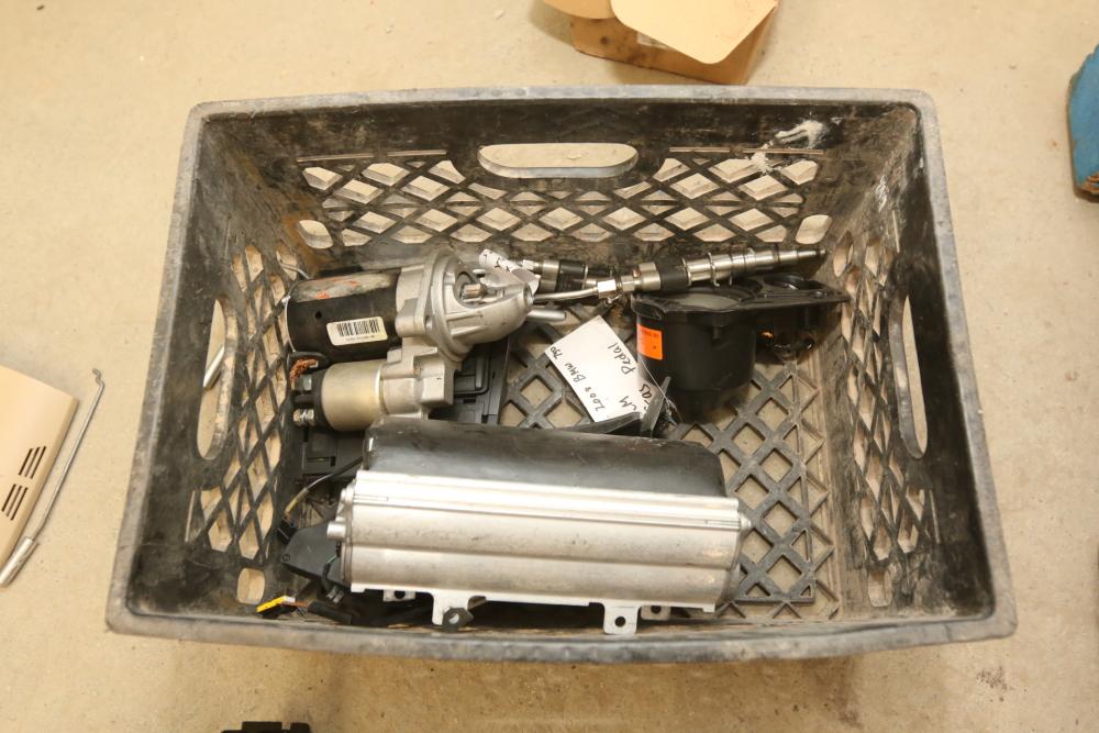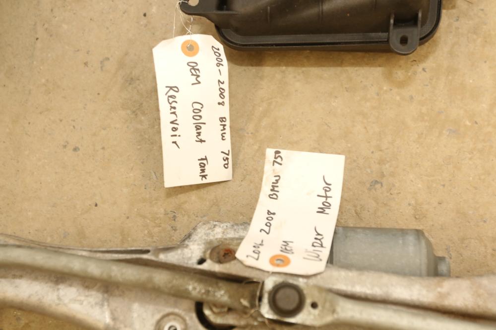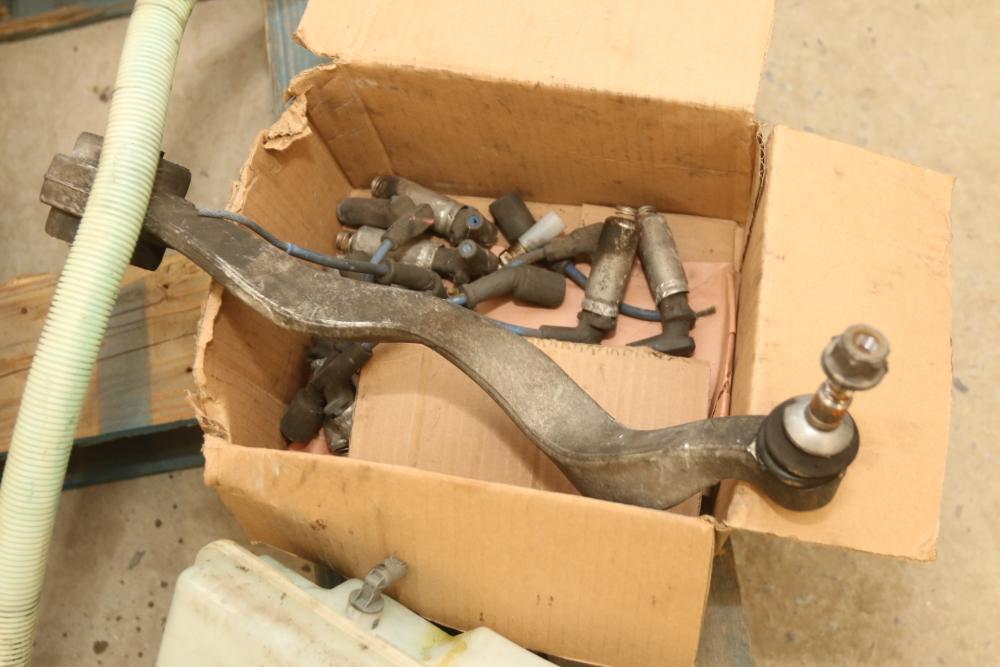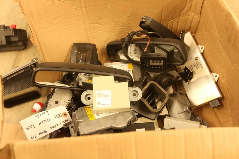 Automotive parts believed to be BMW incl exhaust system, radiators, rear view mirrors, starter fans, engine bay covers, air intake box, wiper motor, coolant tank reservoir, speakers, coolant lines, etc. Pickup only.