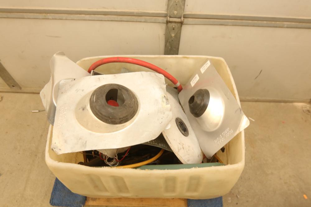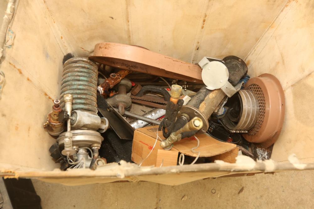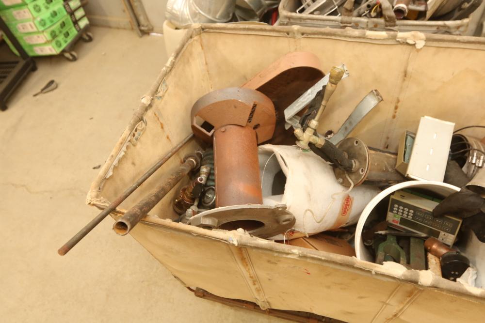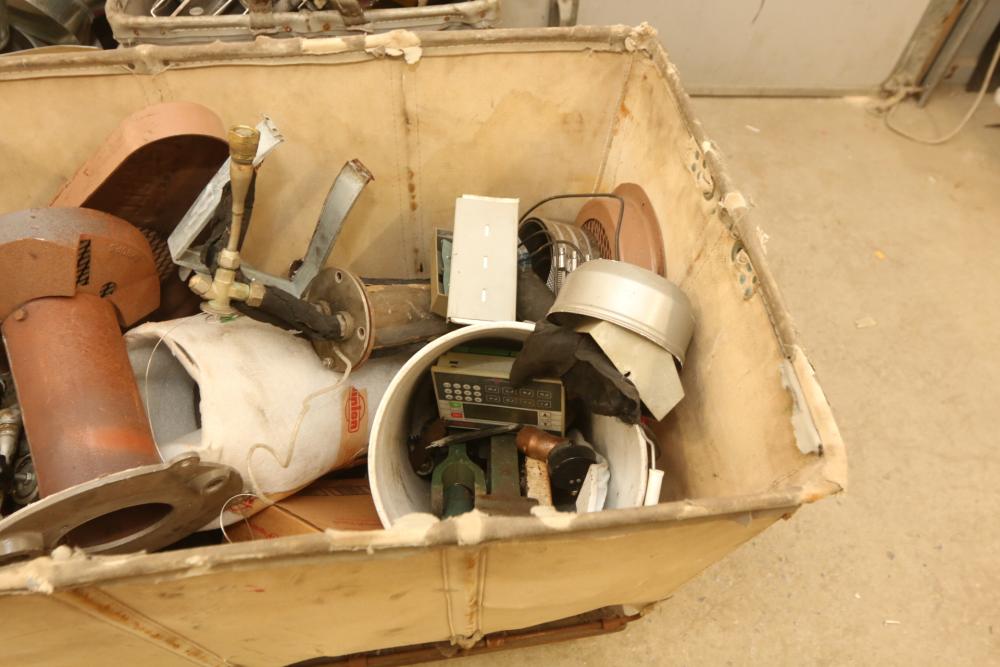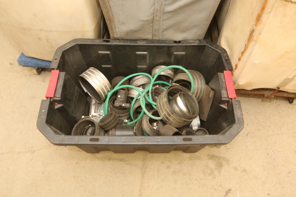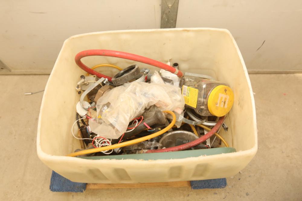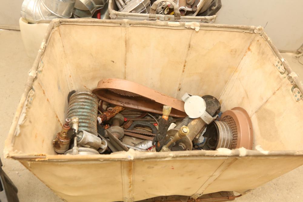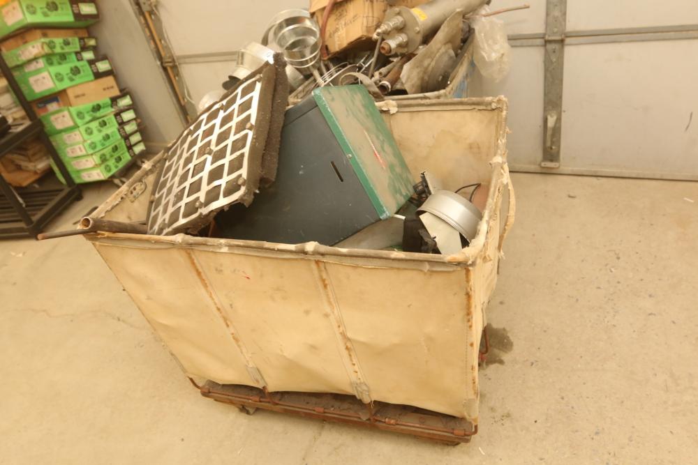 Large grouping of automotive parts and tools incl air hoses, couplers, jumper cables, filters, duct work, pipe fittings, springs, etc. Pickup only.