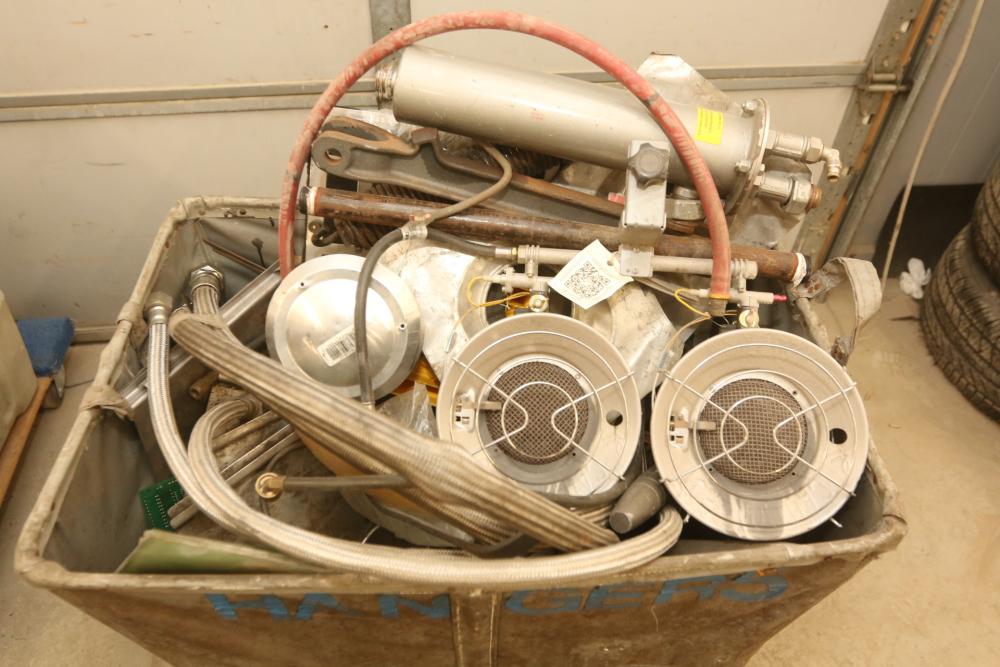 Items include oxygen/acetylene cutting torch; BMW straight six engine; BigWhiteShark metal cutting wheel; Dyna-Glo Pro 80,000BTU kerosene heater; Dewalt 4-1/2" wired angle grinder; propane tanks; automotive interior parts; Homelite gas powered leaf blower; Sears hand grinder; Viking Equipment hydraulic engine hoist; Tillman welding jacket; horizontal band saw; air hoses/couplers/jumper cables; flap discs; tires; pressure washers; Nug Smashers; pvc pipe fittings; Elmo Rieetschle vacuum pump; Craftsman rooling tool box; Marvin 12 lite doors; 18" BMW five lug rims 8Jx18EH2; Hilti cordless impact driver; Stanley miter box; Better Built diamond plate truck bed box; FarmTek jump box; clutch kit; Fulton fan assembly; hedge trimmer; TIF refrigerant leak detector; rotors; Steedaire cast iron series air compressor; Rigid pipe threader/wet-dry vac; Poly ISO insulation; hand tools and more. Items are located in Pleasant Valley, NY.