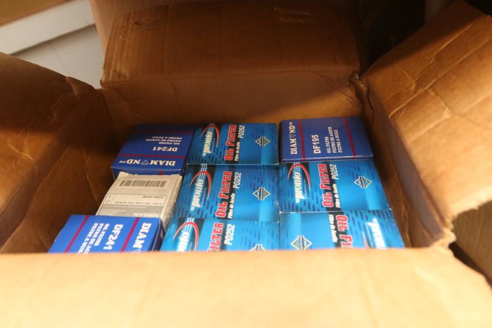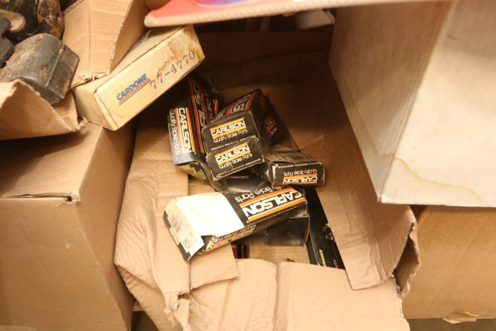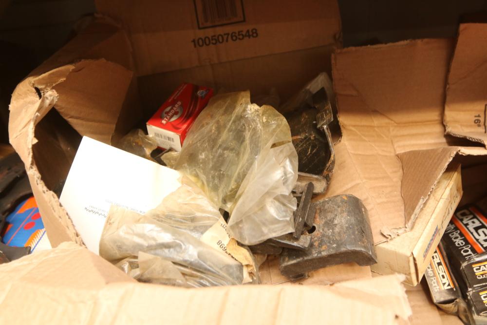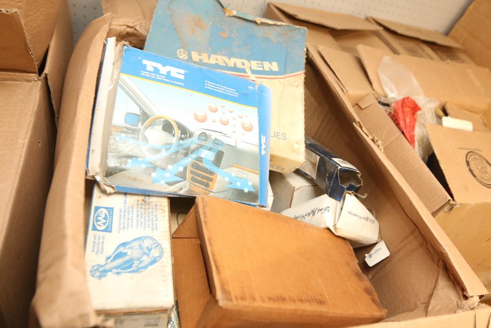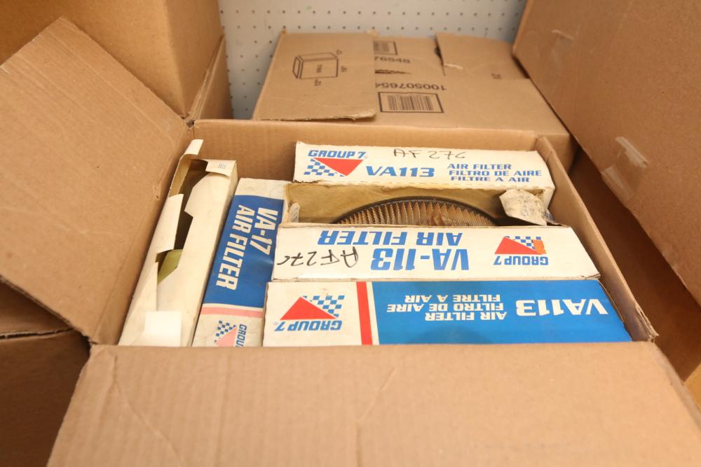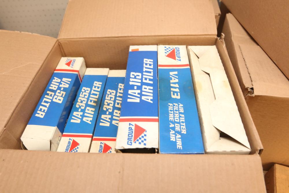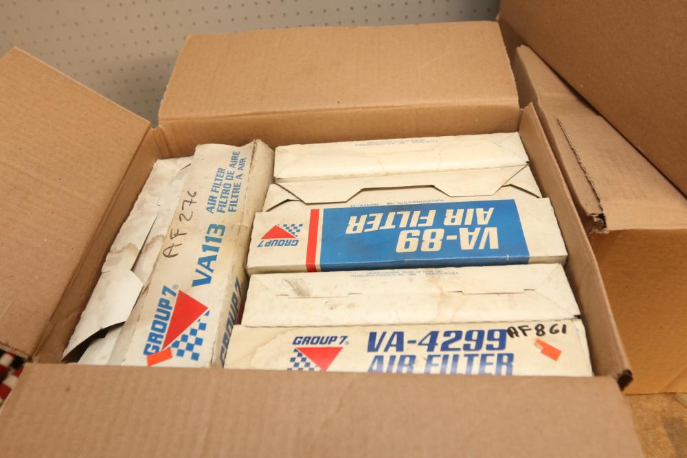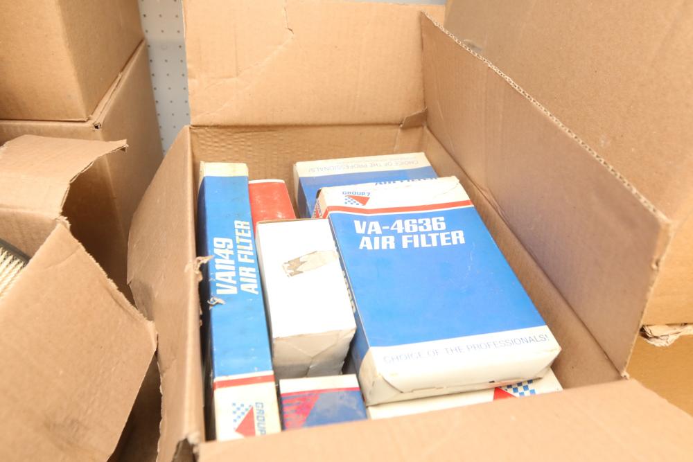 Automotive parts incl air filters some part numbers incl 46046, 46043, 46048, 46052, VA-59, VA-3353, VA-113, VA-98, VA-4299, VA-4636, VA-1149, brake shoes, automatic transmission filter kit, Master cylinders part numbers 10-1764, 10-1930, 10-1873, 10-1870, oil filters P0252, heater core 94620, 94701, strut cushion, bearing plate 901952, etc. Pickup only.