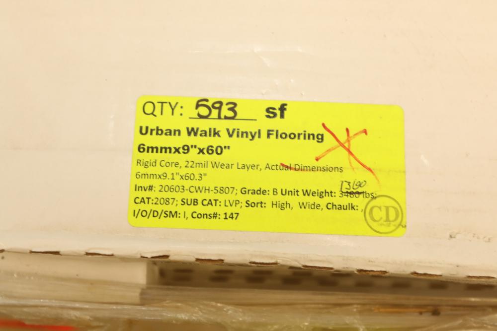 Urban Walk vinyl flooring 6mm x 9" x 60". Rigid Core, 30 boxes, each box contains five pieces or 19.13 SF, 22mil wear layer, actual dimensions: 6mm x 9.1" x 60.3"