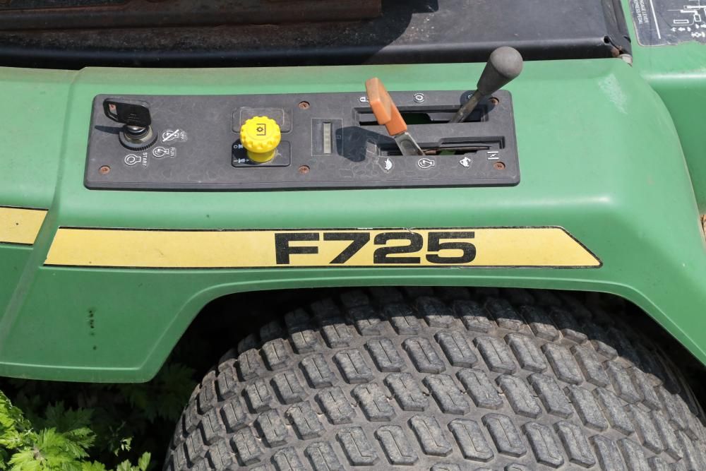 John Deere F725 Lawnmower, with a liquid cooled V-twin engine, Product ID Number: M0F725X082524.