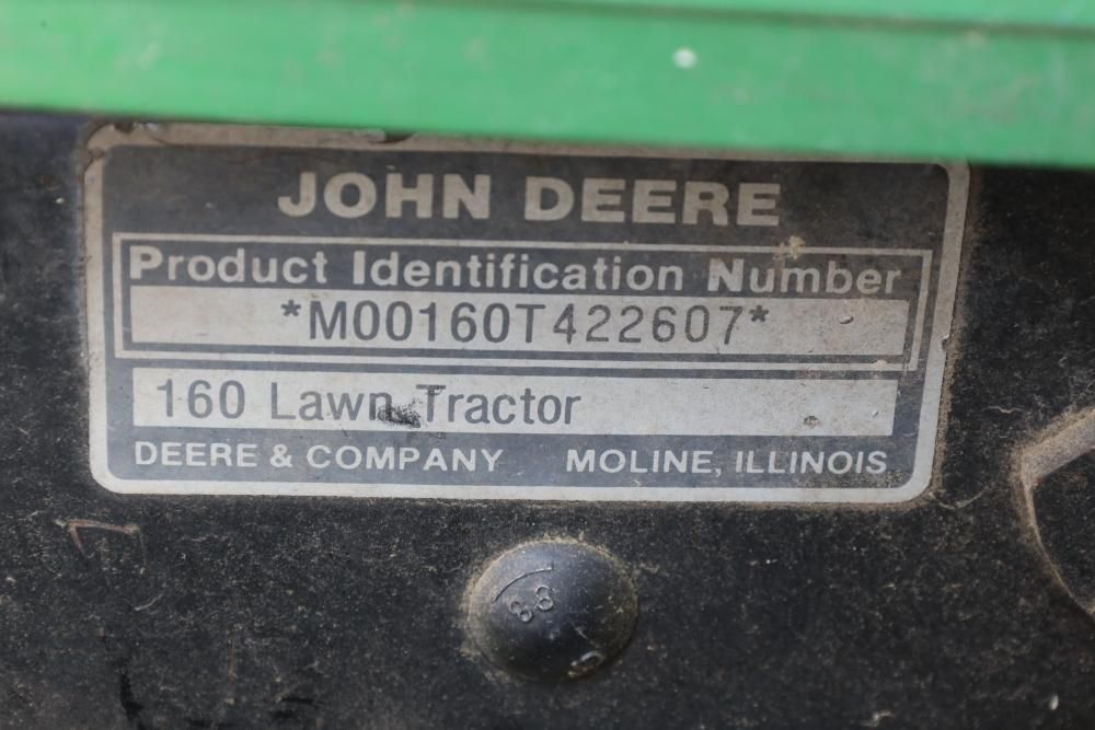 John Deere 160 series lawn tractor ride on mower, Product ID number:M00160T422607, with 38 mowing deck, Kawasaki FB460V.