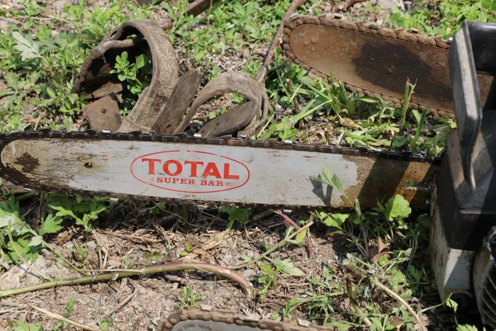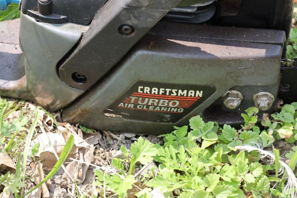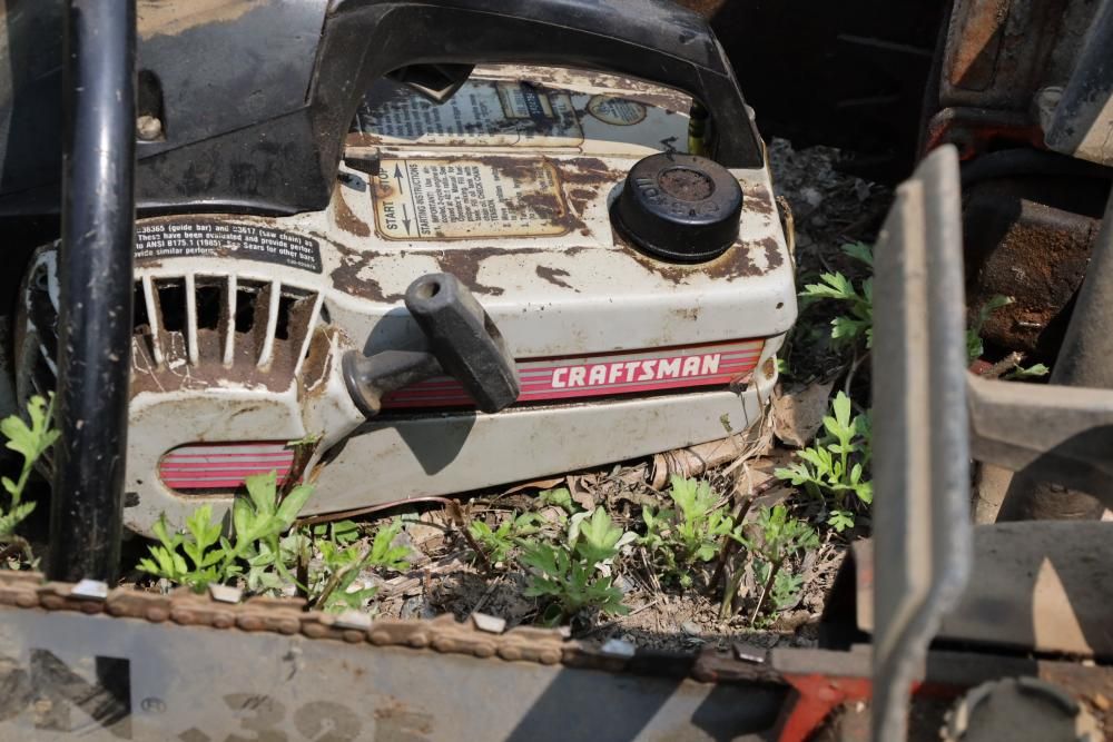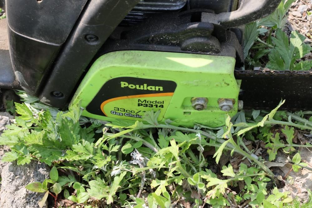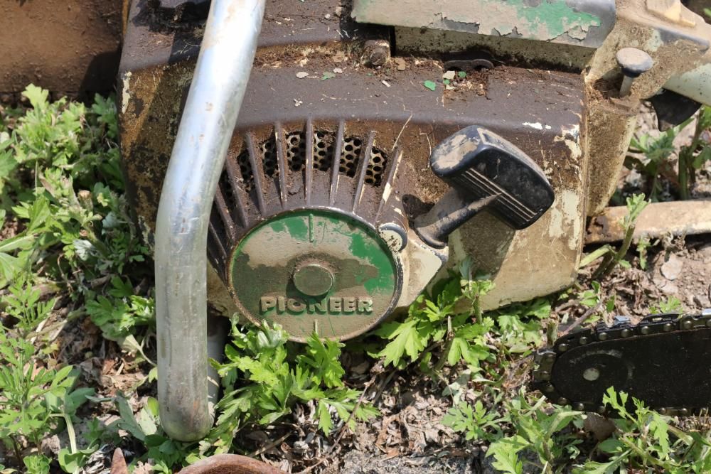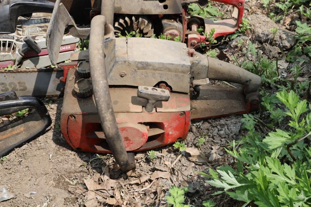 Eight chainsaws including Craftsman, Pioneer, McCulloch MAC 3200, Poulan model P3314, etc., also including two tree climbers.