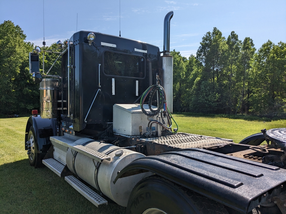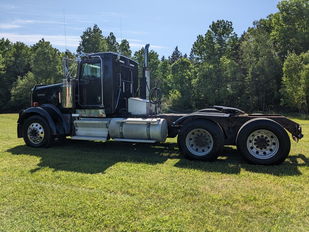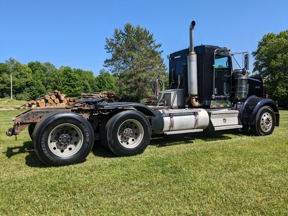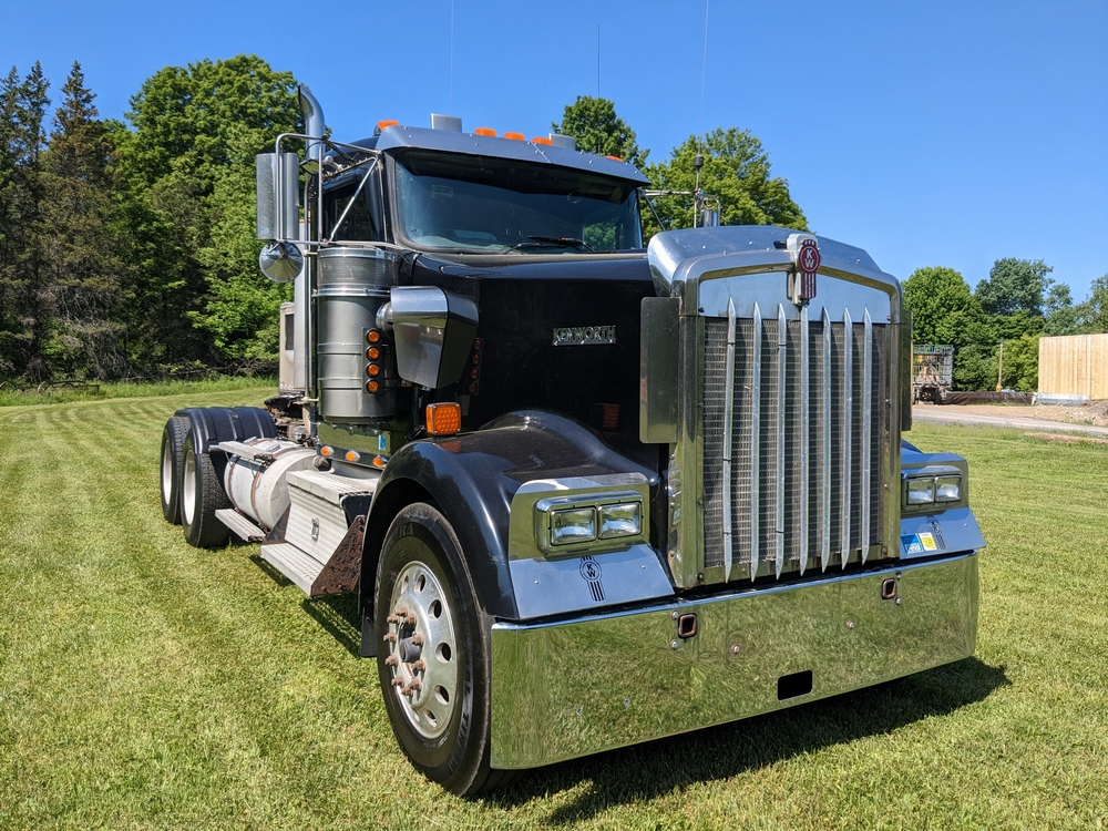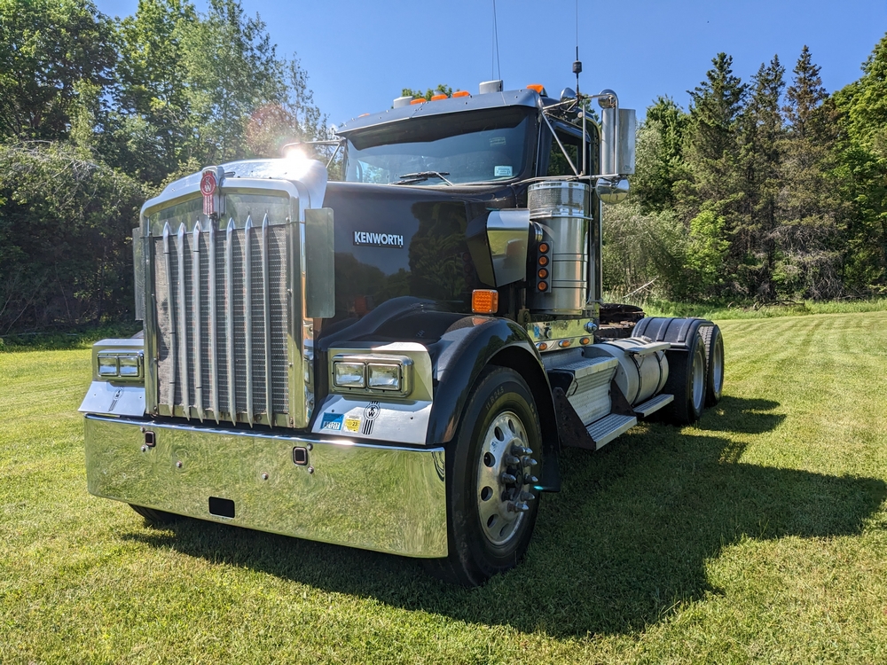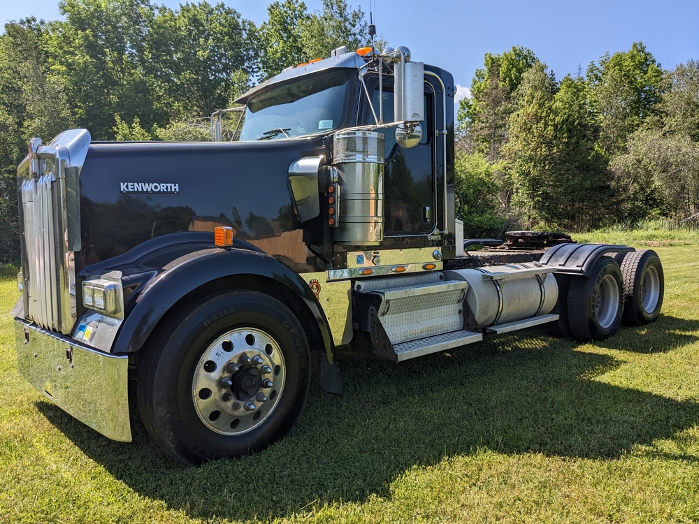 2008 Kenworth W900L tractor, VIN: 1XKWD40X08J208439. Engine: Cummins ISX 525,14.9L. Odometer Reading: 850,000. Seller reports 150,000 on motor. Eaton 18-speed transmission. Gear ratio: 46,000 rears, 14,000 front. Seller states Cummins ISX 525 motor turned up to 600. Equipped with Wet line with high/low pressure pump, Pintle hook. New turbo, New clutch, New kingpins, New front brake / drums, New front service chambers, All New slack adjusters, New steer tires, New heater box, New Blower motor, New AC condenser, New Heater core, New bottom bushings on drive axles, New yoke on transmission and u-joint, New air filters, New muffler, 3 axle alignment May 2023, Recent oil change,1 year old radiator. Runs, drives, operates.