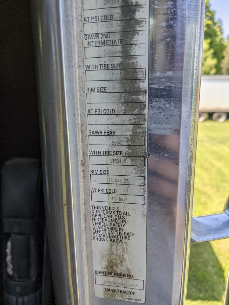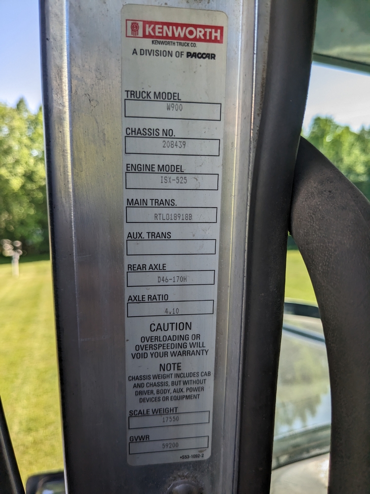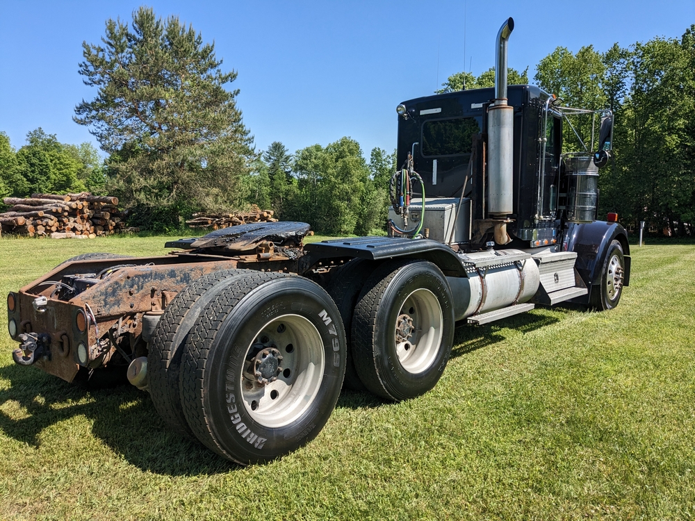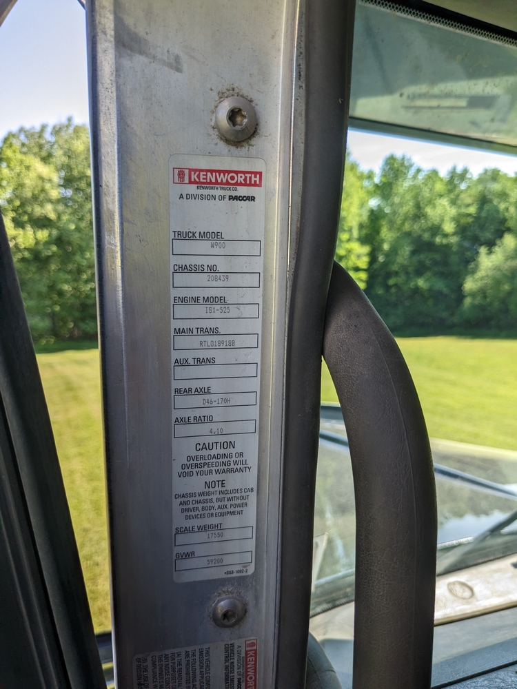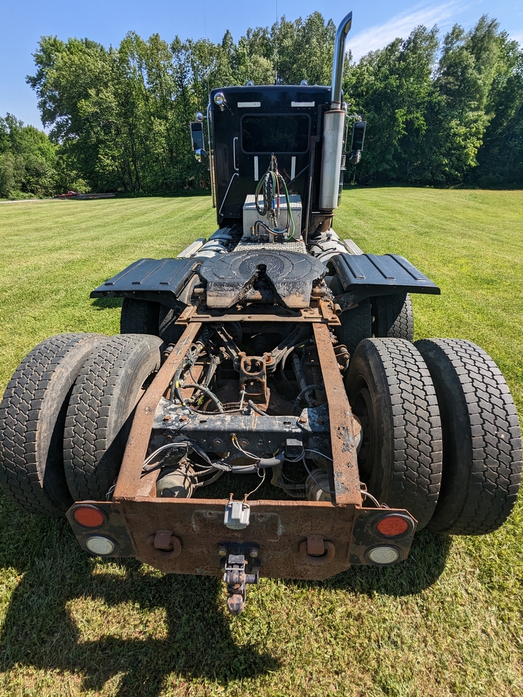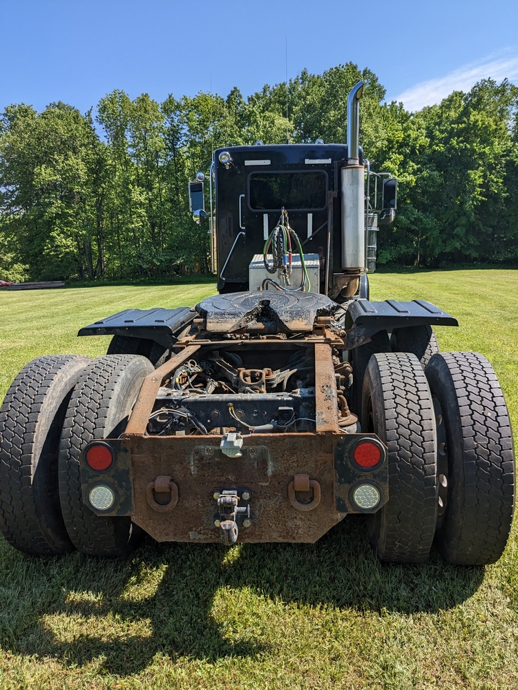 2008 Kenworth W900L tractor, VIN: 1XKWD40X08J208439. Engine: Cummins ISX 525,14.9L. Odometer Reading: 850,000. Seller reports 150,000 on motor. Eaton 18-speed transmission. Gear ratio: 46,000 rears, 14,000 front. Seller states Cummins ISX 525 motor turned up to 600. Equipped with Wet line with high/low pressure pump, Pintle hook. New turbo, New clutch, New kingpins, New front brake / drums, New front service chambers, All New slack adjusters, New steer tires, New heater box, New Blower motor, New AC condenser, New Heater core, New bottom bushings on drive axles, New yoke on transmission and u-joint, New air filters, New muffler, 3 axle alignment May 2023, Recent oil change,1 year old radiator. Runs, drives, operates.