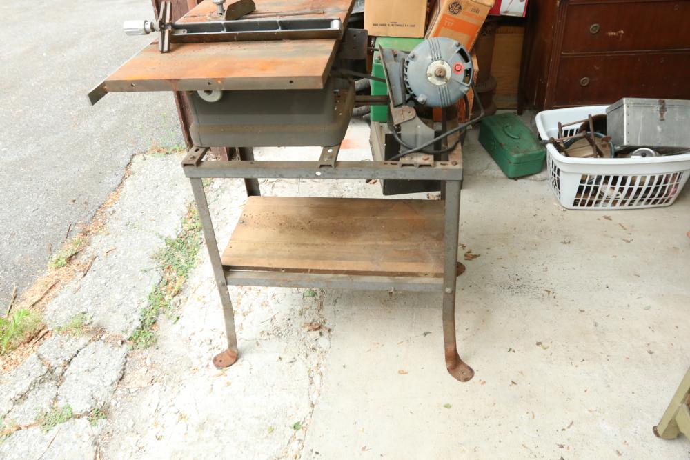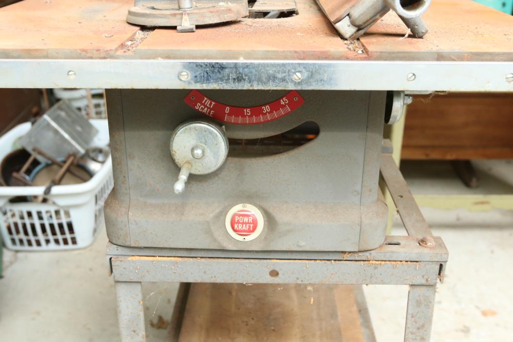 Powr Kraft table saw mounted to four leg stand unknown if operational Model: 25T5W 3315-A.