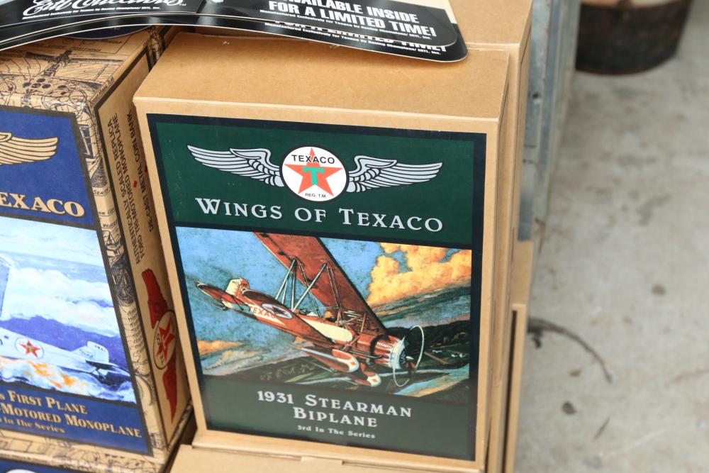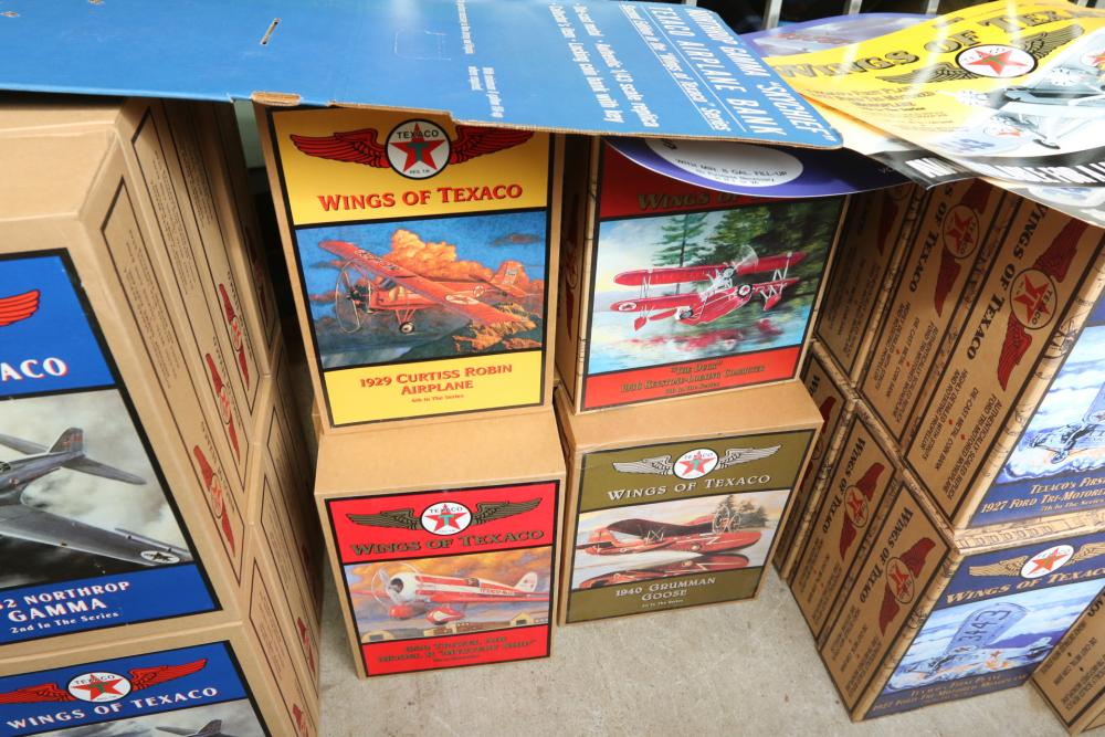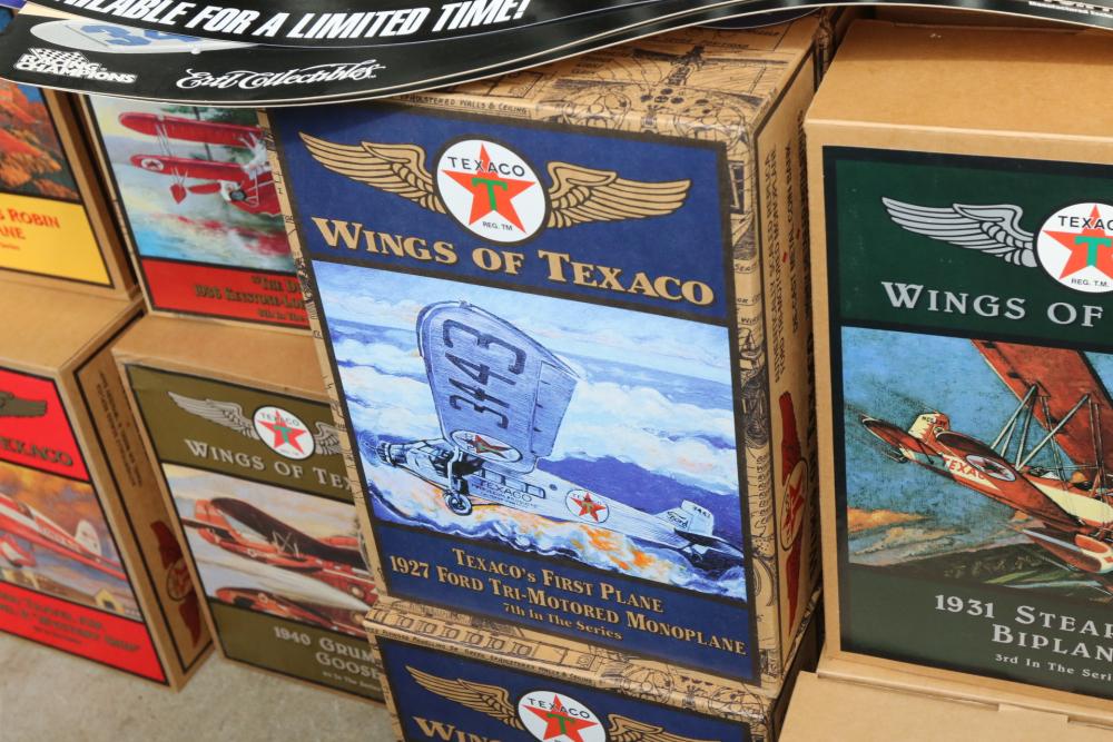 Wings of Texaco by Ertl collector model airplanes, some include 1929 Curtiss Robin Airplane, 1940 Grumman Goose Airplane, 1932 Northrop Gamma Airplane, etc.