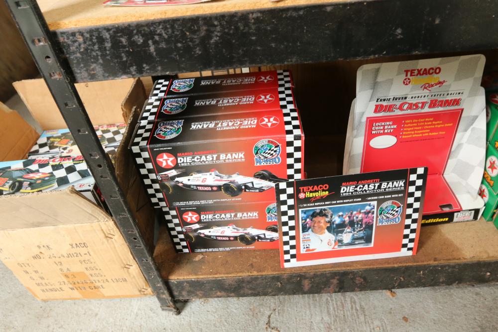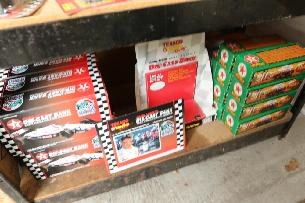 Texaco Havoline Racing adult collectable stock car die cast bank 1994 collectors series, Mario Andretti collectable stock die cast bank series, etc.