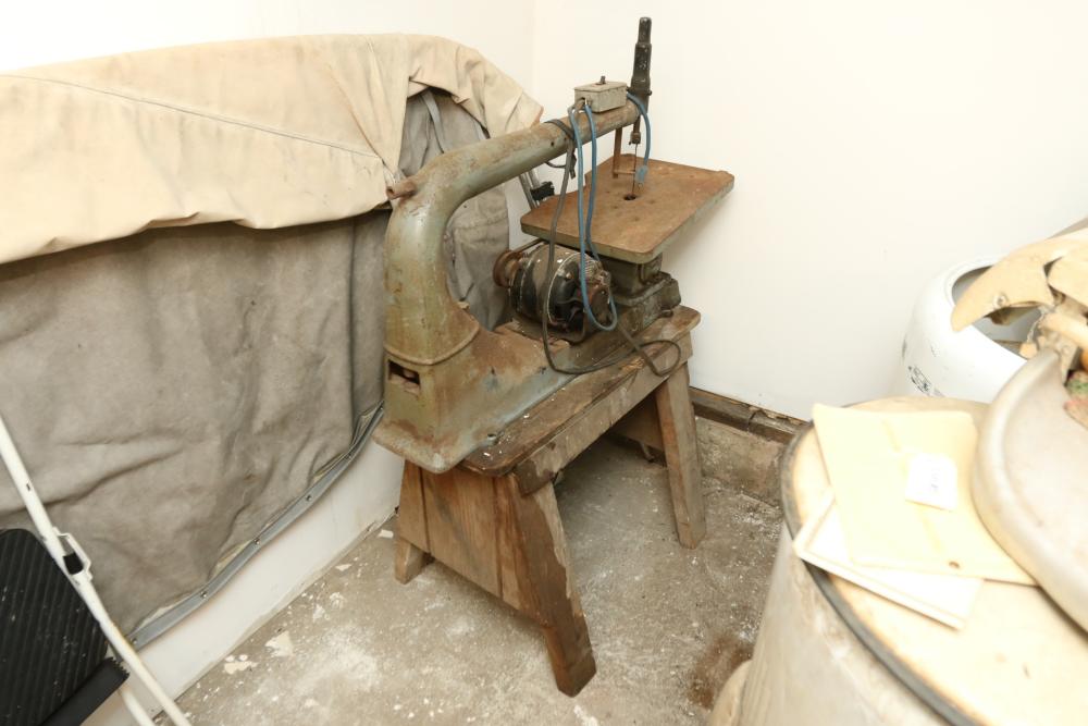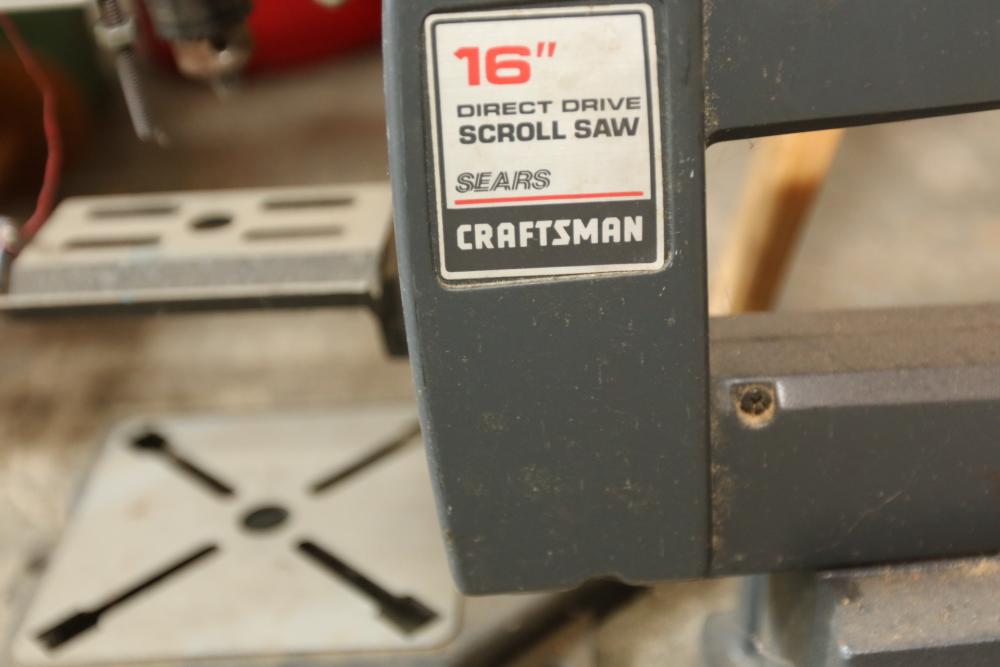 Emerson Electric band saw on wooden stand, model S600XSFB, measuring approx. 11 x 38, Craftsman 16 scroll saw.