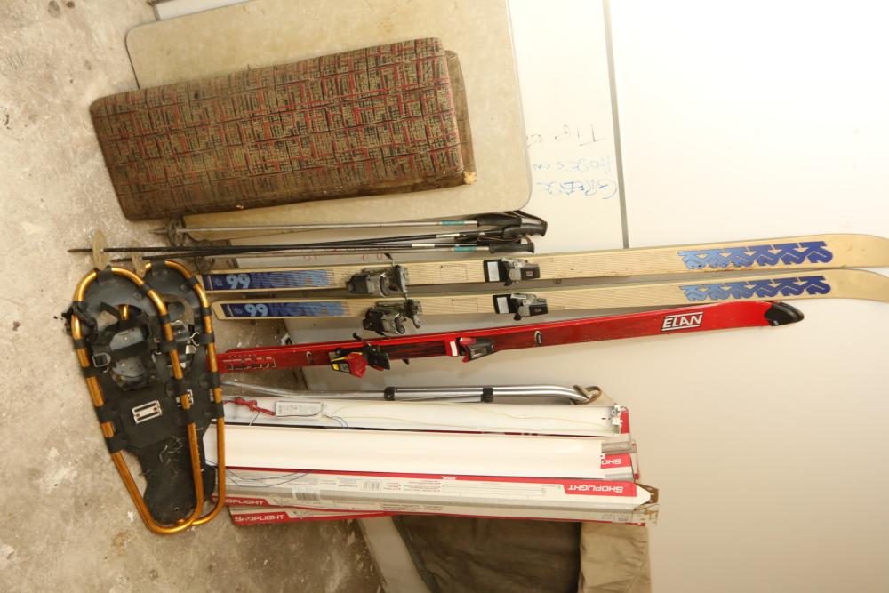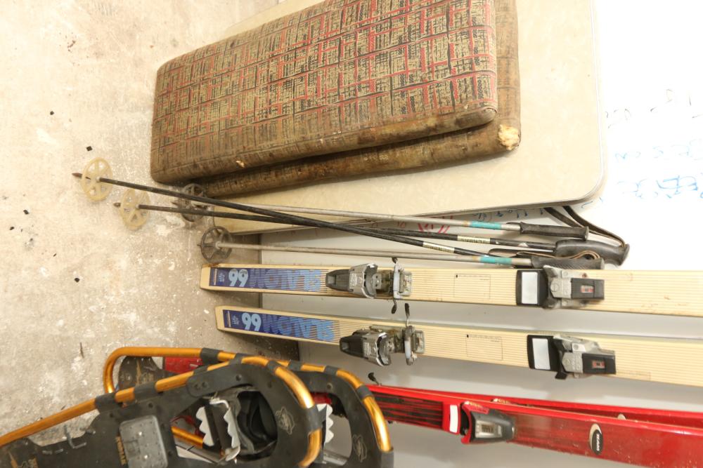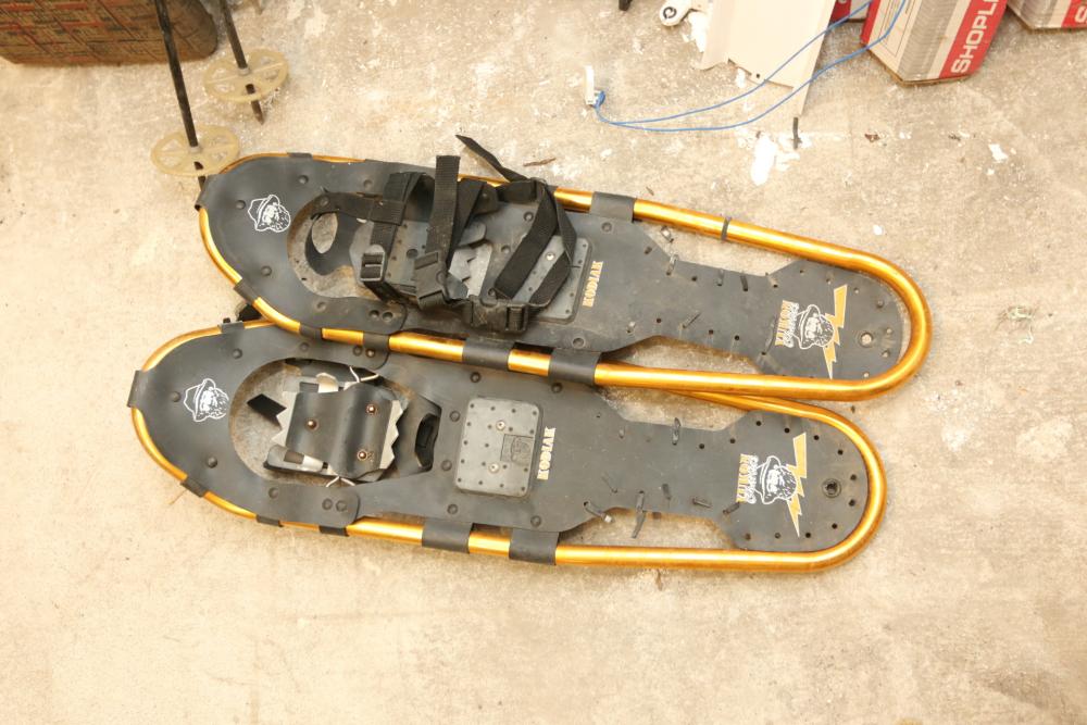 K2 Slalom 99 skis with poles and Elan Racing Team skis with poles, also incl Kodiak snow shoes.