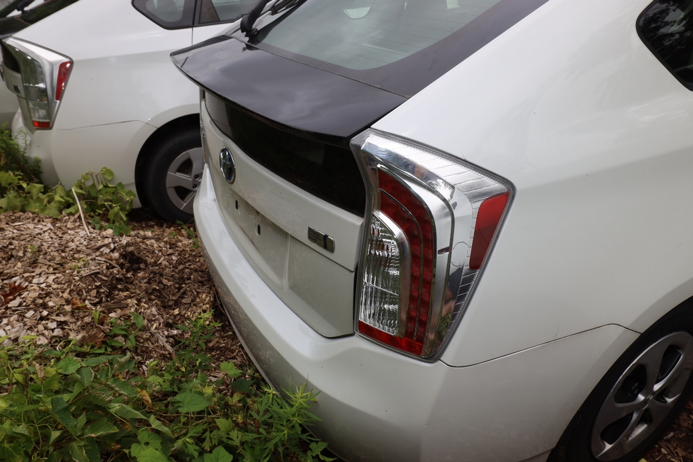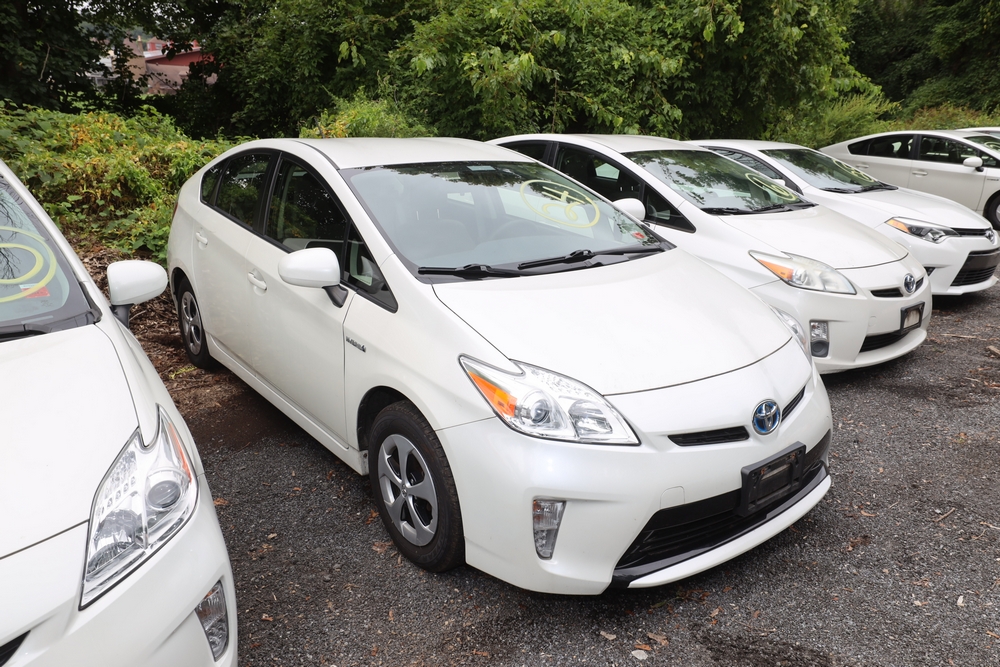 Items include 2015 Toyota Prius, 2016 Toyota Corolla, 2017 Toyota Prius, 2009 Toyota Prius, 2010 Toyota Prius, 2001 Dodge Ram 3500, 2014 Dodge Grand Caravan, 2014 Ford Escape, 2010 Ford E-350, 2013 Ford F-250, 2015 GMC Sierra, John Deere JS60 Lawn mower, string trimmers, backpack blowers, MI-T-M pressure washers, and more. Items are located in White Plains, NY.