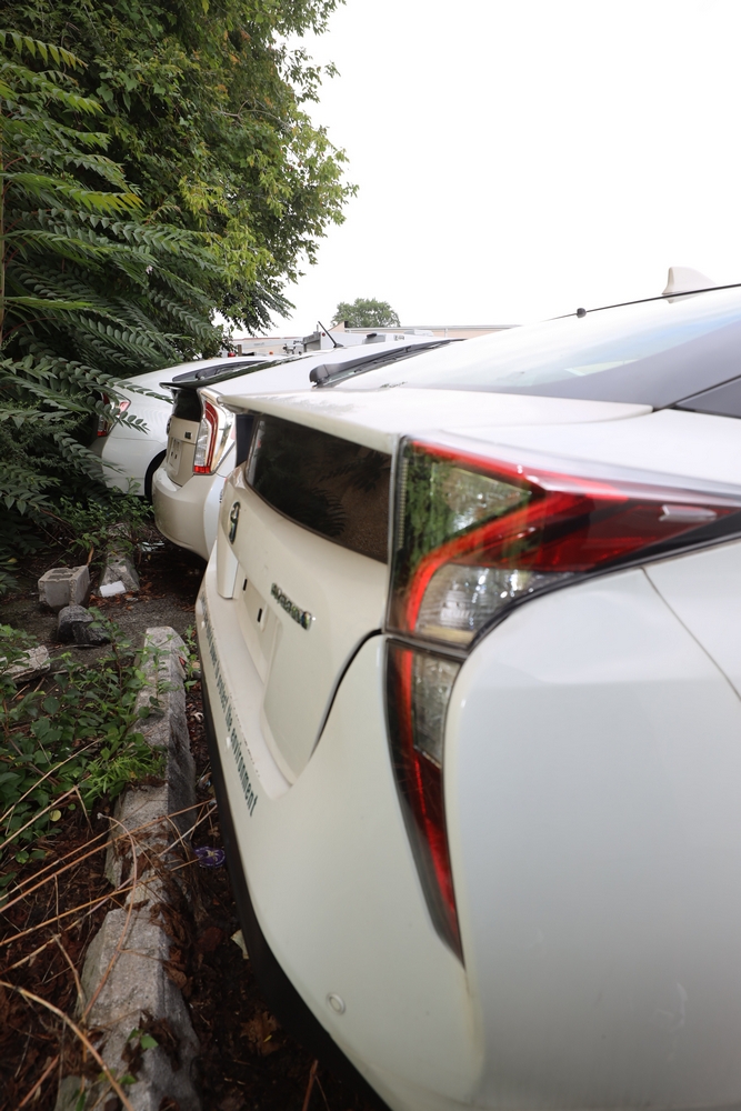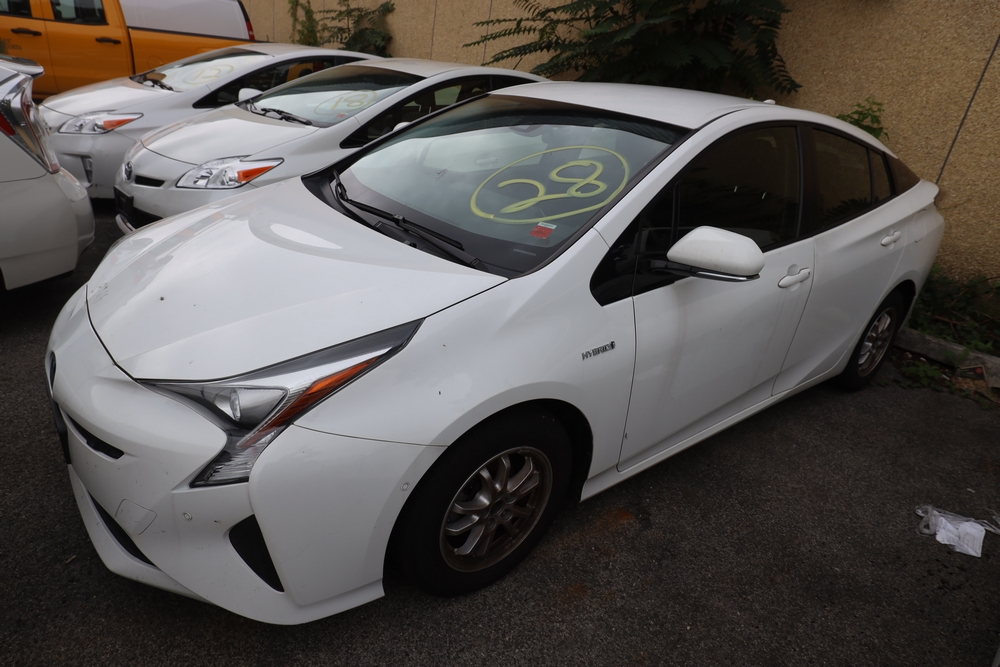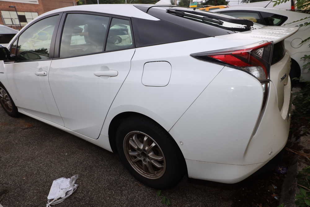 Items include 2015 Toyota Prius, 2016 Toyota Corolla, 2017 Toyota Prius, 2009 Toyota Prius, 2010 Toyota Prius, 2001 Dodge Ram 3500, 2014 Dodge Grand Caravan, 2014 Ford Escape, 2010 Ford E-350, 2013 Ford F-250, 2015 GMC Sierra, John Deere JS60 Lawn mower, string trimmers, backpack blowers, MI-T-M pressure washers, and more. Items are located in White Plains, NY.
